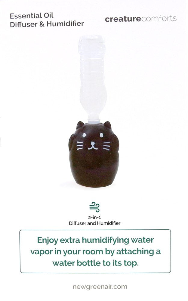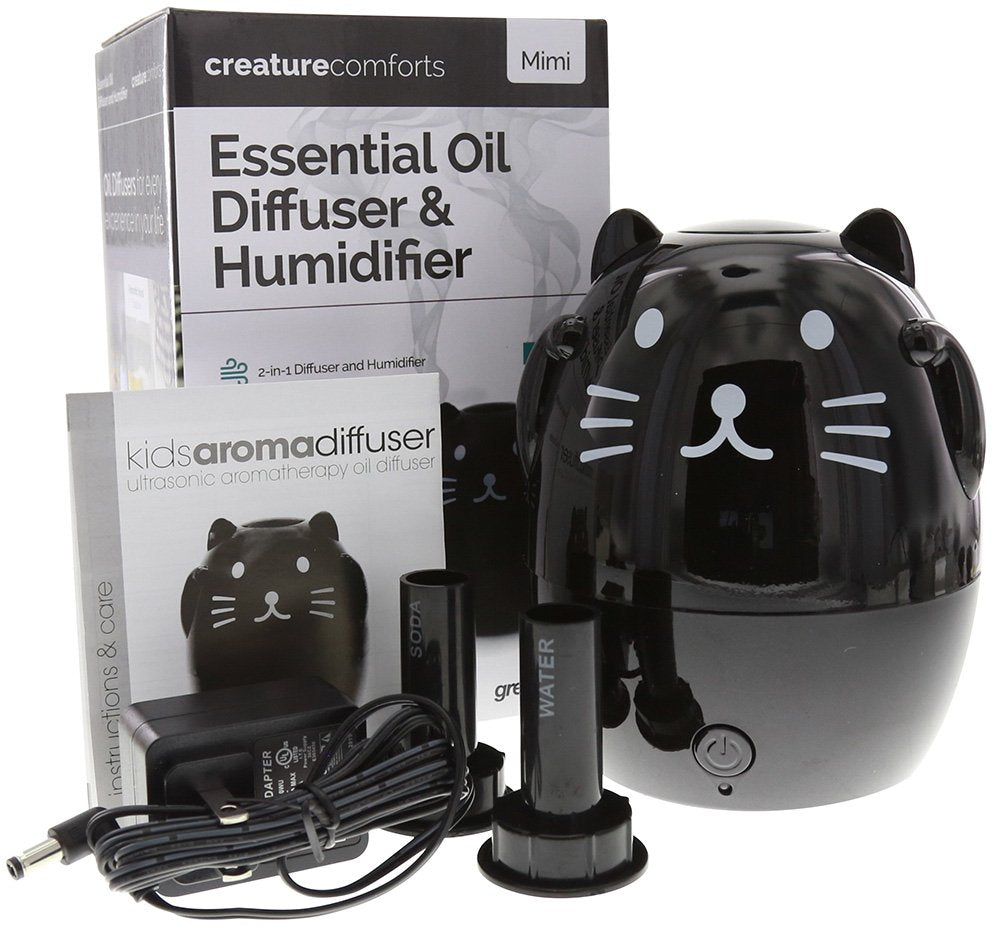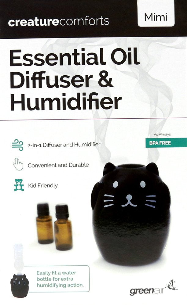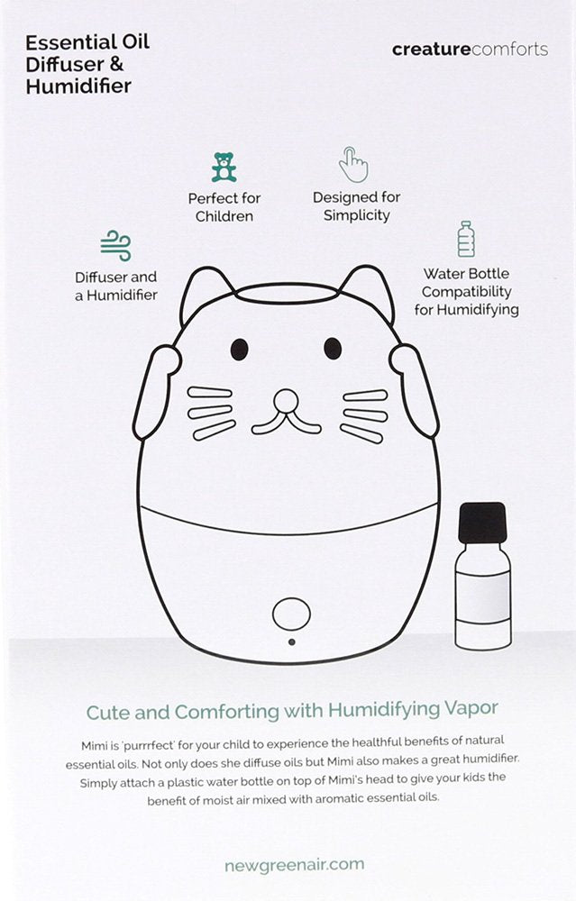 Details: Mimi the Cat is a Versatile, Beneficial Diffuser and Humidifier - Diffusers vaporize essential oils for aromatherapy while humidifiers put moisture into dry air, benefiting sinuses, skin, and more. The GreenAir Creature Comforts Essential Oil Diffuser and Humidifier does both, allowing you to give your little boy or girl the amazing benefits of cool air and aromatic mist.