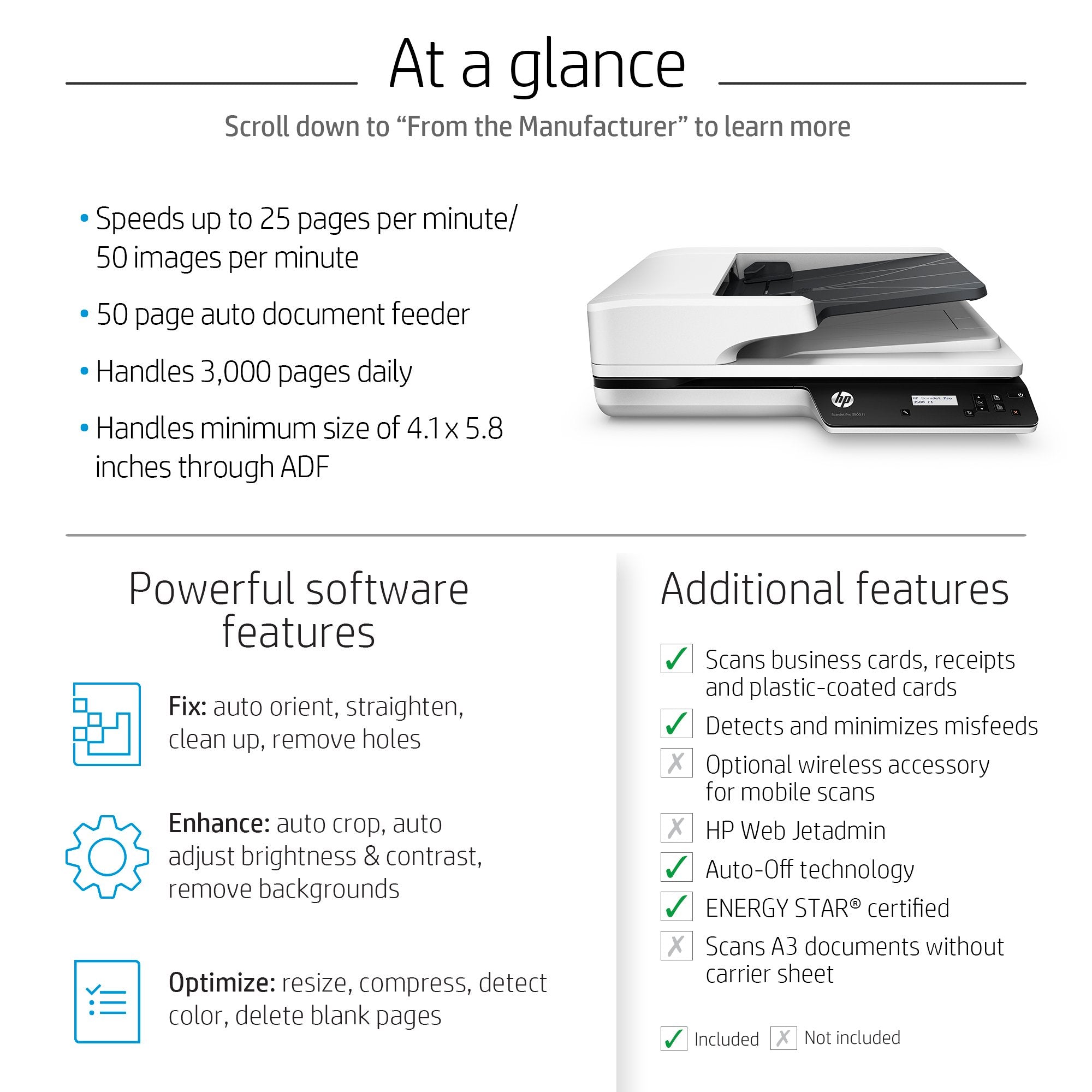 - Speeds: Achieve scan speeds up to 25 pages per minute, 50 images per minute, and 3,000 pages per day with single-pass, two-sided scanning to help automate workflows