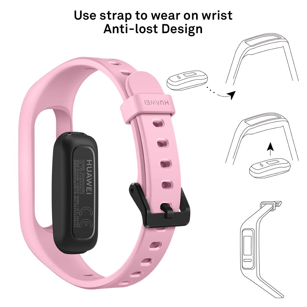 Details: Innovative Footwear Mode The HUAWEI Band 3e is a revolutionary breakthrough in sports bracelet wearables that uses a new Footwear Mode: an application that provides precise running data with the press of a button. Professional Running Coach Become a smarter runner with 7-data monitoring and analysing running form. Put forward the intelligent suggestions with precise data to help you develop better posture and make running more efficient. Live a healthier life with HUAWEI Band 3e. Foot-Strike Placement Monitoring Take control of the crucial moment when your feet touch the ground. HUAWEI Band 3e will monitor your foot strike patterns and help you avoid heel-strike. Collaborate with Professional Institute Huawei collaborated with Professional Research Institute to develop a running detection technique that is based on high-precision action recognition algorithm. In cooperation with Chinas Sports Science Research Institute of the State Sports General Administration. Intelligent Motion Sensor The HUAWEI Band 3e will provide treadmill running data at a 97% accuracy using a built-in 6-Axis Gyroscope based sensor in Footwear Mode. Formidable 50m Water Resistance With 50m water-resistance, the HUAWEI Band 3e is designed for completing easy everyday tasks and swimming. The performance data that is captured can help you take a post-run dip in the water like a champion. HUAWEI Band 3e gives you newfound freedom. One Charge, Life Goes Further In standby mode, long-lasting battery life allows continuous duty operation for 14 days. One charge supports up to 40 full hours under running mode, sustaining a continuous stream of alerts, alarms, calls and movement reminders.
