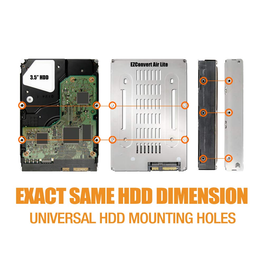 Details: The ICY DOCK EZConvert Air Lite MB482SP-3B 2.5 inch to 3.5 inch SAS SATA SSD/HDD mounting adapter is designed using the dimensions, connection locations, and mounting hole positions of a standard 3.5 inch SATA hard drive. It can be used in any internal 3.5” hard drive bay, such as Mac Pro 3.5” HDD sled, iMac 3.5” drive bay, 3.5” SATA NAS enclosure, home server/media center, server, workstation, and desktop PC. The EZConvert Air Lite MB482SP-3B is specifically designed for Mac Pro and iMac's 3.5" HDD sled/bay, and it is comparable to the Newertech Adaptadrive 2.5" to 3.5" drive converter bracket. The foundation of the EZConvert Air Lite stems from it's ability to rapidly cool drives. A top-free open air design quickly disperses heat away from drives by allowing it to 'breathe' instead of fully enclosing it. This is crucial during intense applications and may lead to better performance since it's well known that excessive heat can interfere with your system's ability to perform optimally. We've strategically placed ventilated slots around the converter allowing heat to escape from all sides and angles, while the metal frame acts as a giant heat sink to quickly cool your hard drives. The open air design, ventilated slots, and metal frame combine to produce an advanced cooling system to put your mind at ease. For drive protection, the ICY DOCK’s EZConvert Air Lite 2.5” to 3.5” SSD/HDD mounting adapter offers best drive protection by using the enclosed stainless steel housing which covers the entire 2.5” SSD or hard drive to prevent physical damage to your valuable drive. The EZConvert Air Lite MB482SP-3B 2.5 inch to 3.5 inch SAS SATA SSD/HDD mounting adapter is compatible with all the standard 2.5” SAS/SATA SSD or hard drive such as SanDisk Ultra/Plus SSD, Samsung EVO SSD, Crucial MX300 SSD, OWC SSD, Intel 2.5” SSD, and more. All ICY DOCK products are backed up with 3-year warranty.