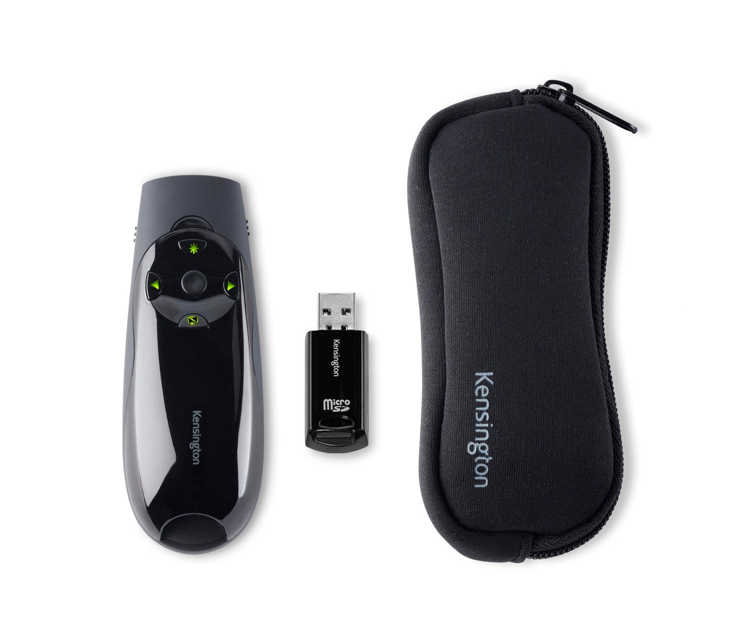 Take control of the room--and your computer's cursor--with the Kensington Presenter Expert Green Laser Presenter with Cursor Control and Memory. The green laser helps you make your point from across the room. But sometimes pointing just isn't enough. With a simple flick of a switch, you'll toggle between presentation and cursor control modes. The powerful 2.4Ghz remote lets you control Keynote or PowerPoint from up to 150 feet (50 meters) away. This Presenter Expert includes a 2GB dongle to store and share presentations and documents.