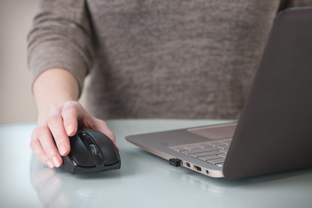 Details: The MP230L Performance Mouse's unique track-on-glass sensor uses a high-definition laser that will follow your hand movements on a wide variety of desk surfaces. The 2.4GHz wireless connection via a USB nano receiver means there are no cords to clutter up your desk. The mouse is full-sized, offering complete comfort in an ergonomic design. In addition to the traditional two-button and scroll wheel top, side buttons offer quicker browser navigation. DPI adjustment buttons allow you to control the cursor tracking speed. And with Plug & Play installation, you'll be up and clicking almost the instant you plug in.