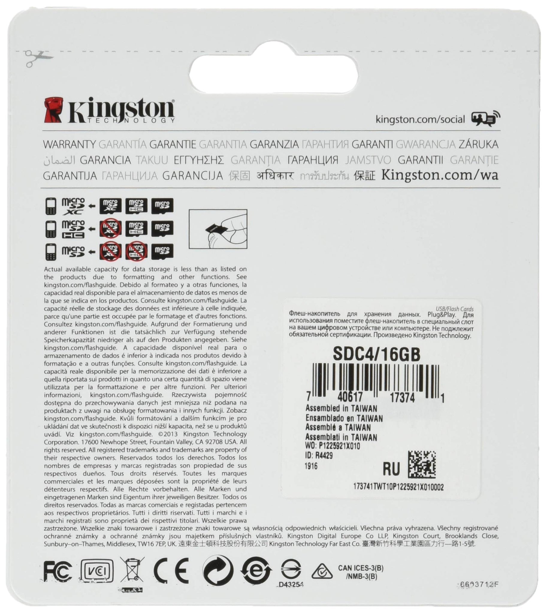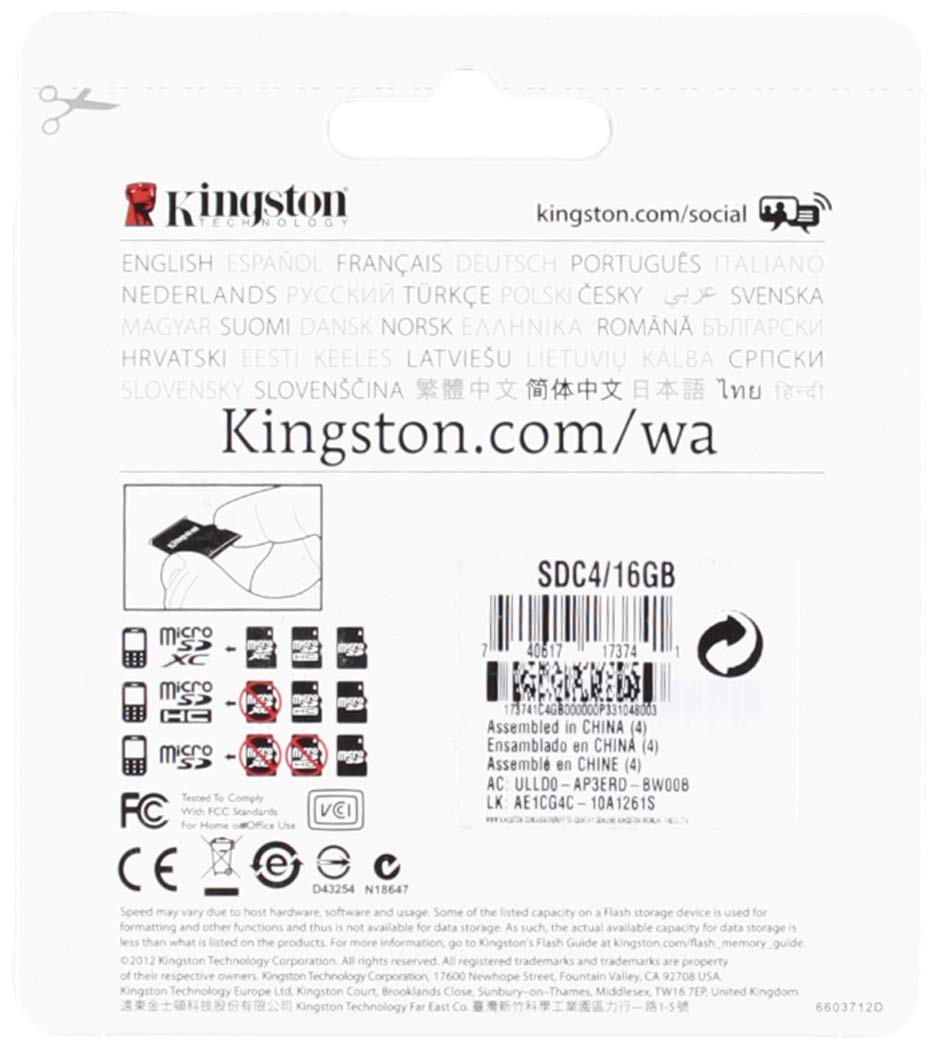 Kingston Digital 16 GB Class 4 MicroSD Flash Card with SD Adapter SDC4/16GB