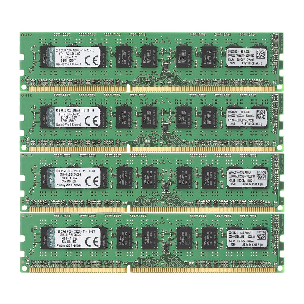 Details: Kingston is the industry leader in PC memory. Kingston is your best source for system-specific memory. Product is backed by a lifetime warranty and free technical support. Included in the package is four 8GB modules of DIMM memory. Specs are240-Pin Unbuffered ECC DIMM.