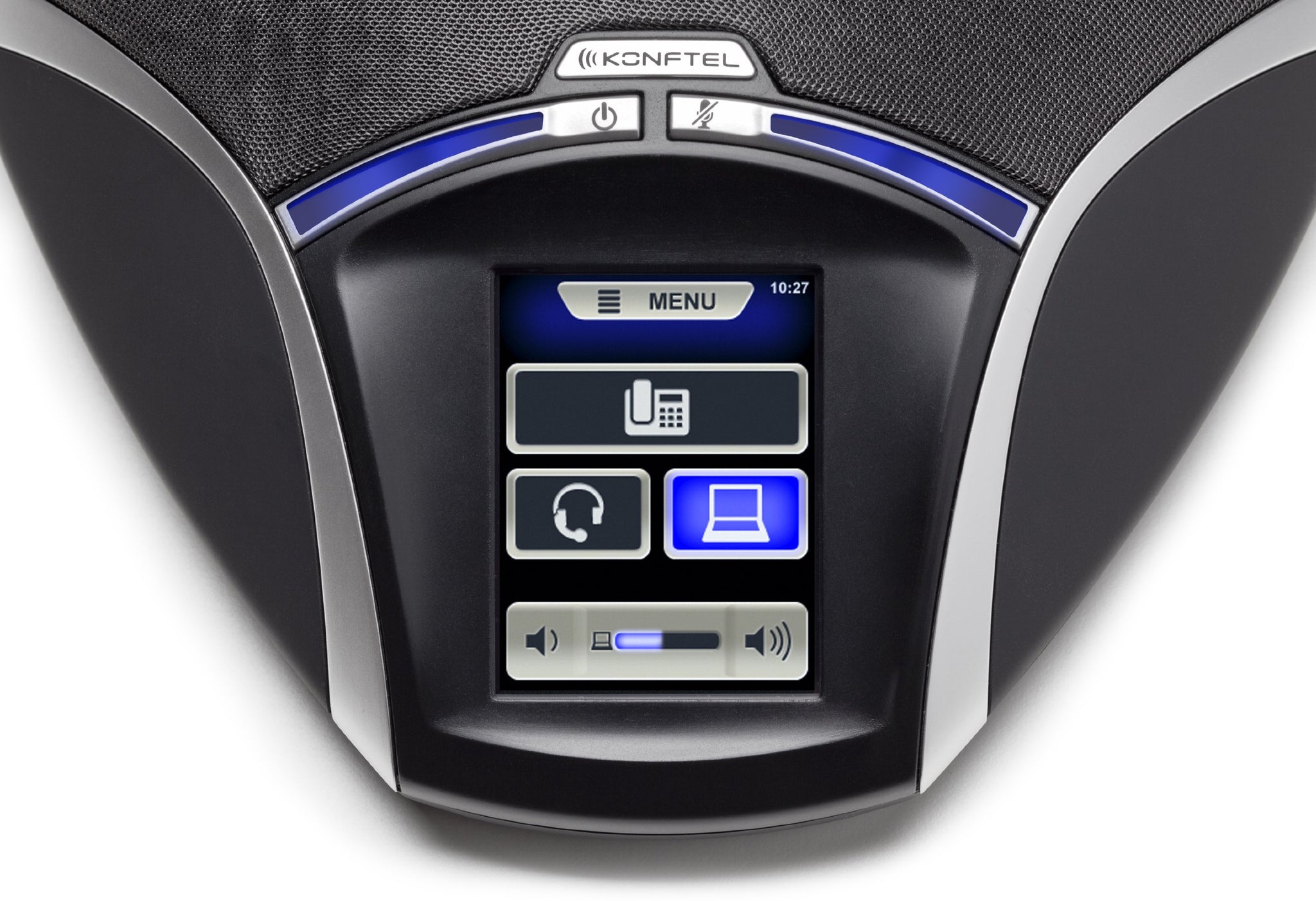 The Konftel 55 is a stylish and easy-to-use speaker phone with impressive, crystal-clear HD sound thanks to our patented OmniSound audio technology. The touchscreen makes controlling calls simple, whether you're connected to a computer, mobile phone or desk phone. The Konftel 55 is fully compatible with the market's leading UC applications. The speakerphone connects directly to Skype for Business, Cisco Jabber or Avaya Communicator on your computer. The app's call functions are controlled from the touchscreen.