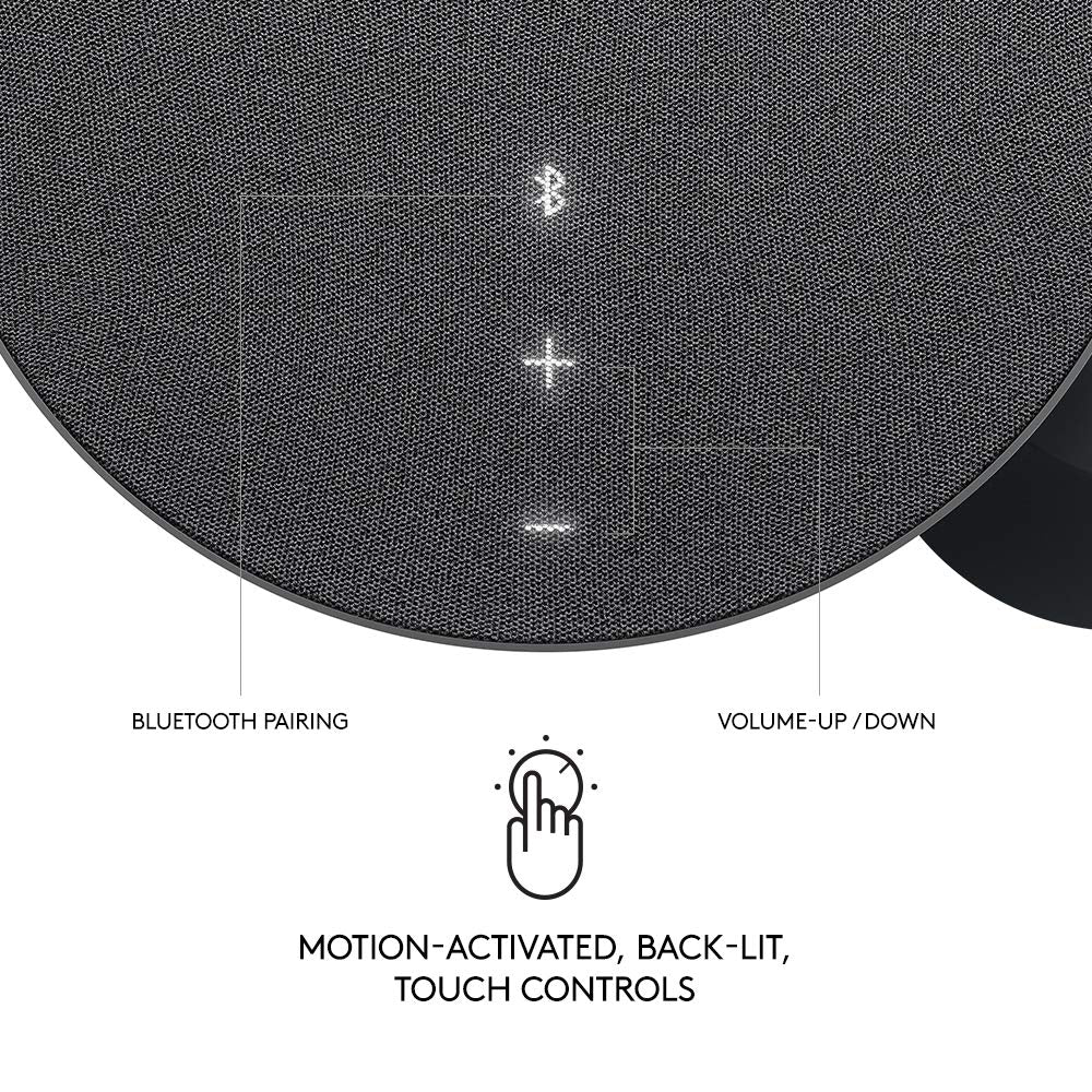 - Adjust the volume and pair Bluetooth devices with a light touch to the motion-activated, back-lit controls on the speaker front