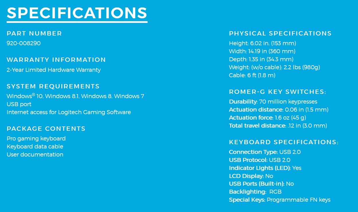 - Pro grade Logitech G mechanical keyboard built to the exacting specifications of eSports athletes for a competition level blend of speed, precision and quiet performance
