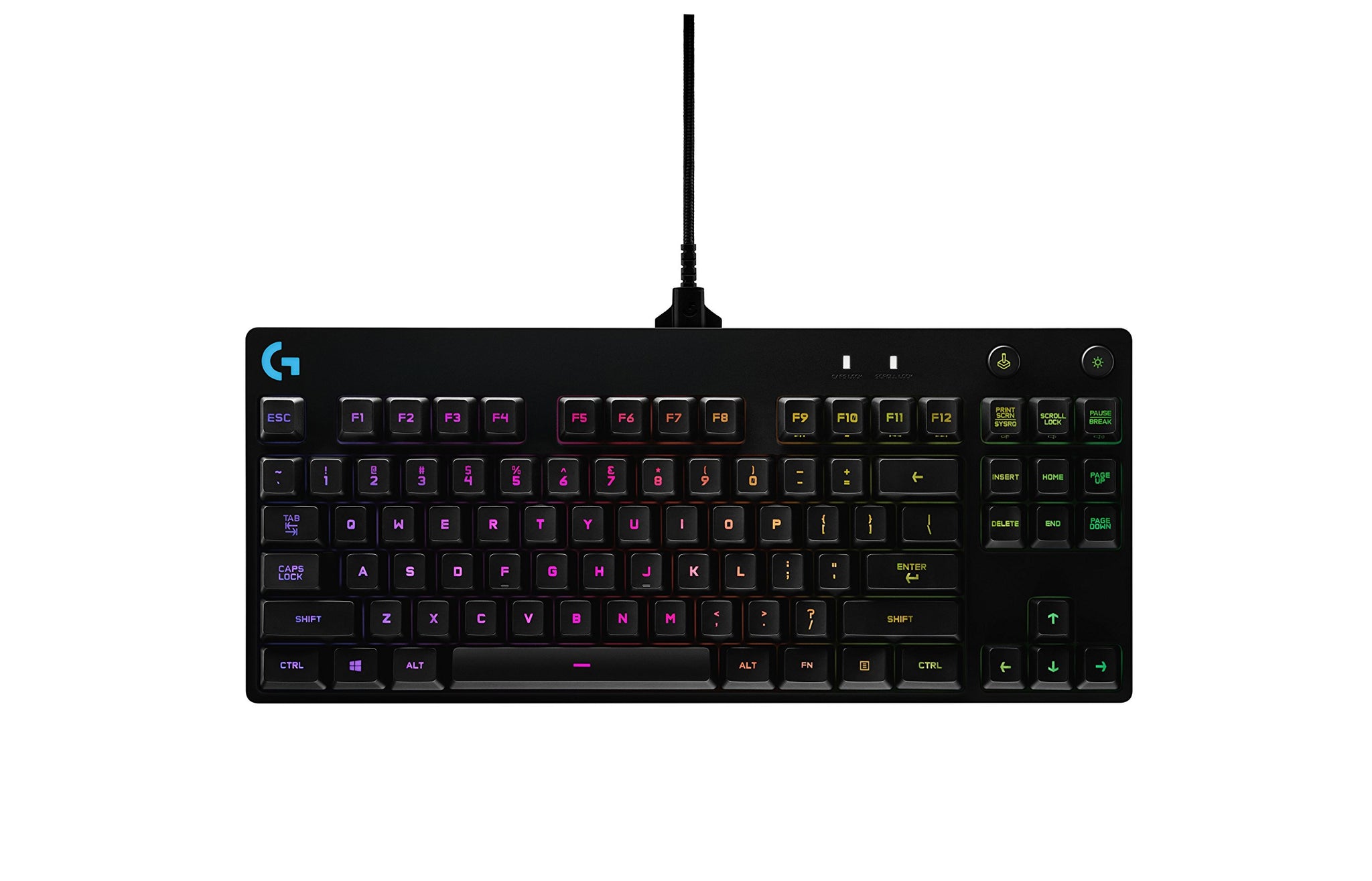 Details: Logitech G Pro Gaming Mechanical Keyboard is designed and built to the exacting specifications of eSports athletes worldwide. Featuring the fastest and most durable Romer G switches in a compact and ultra portable ten keyless design, plus advanced performance built in: customizable Logitech RGB color lighting and lighting patterns, game mode button to disable Windows key and avoid accidental actuation, macros to execute complex commands in a single keystroke, 87 key anti ghosting and 26 key rollover for precision control, and onboard memory to store your lighting configuration. This is the wired Logitech keyboard designed to give you the competitive edge.
