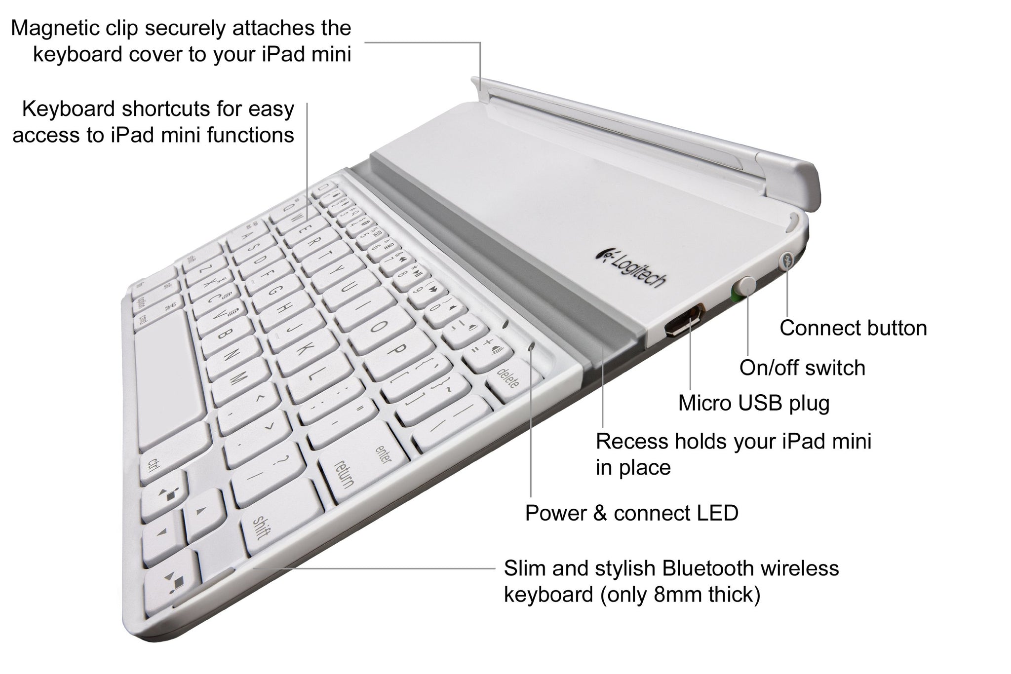 Details: Logitech Ultrathin Keyboard Cover for iPad mini 3/mini 2/ mini - Silver (920-...