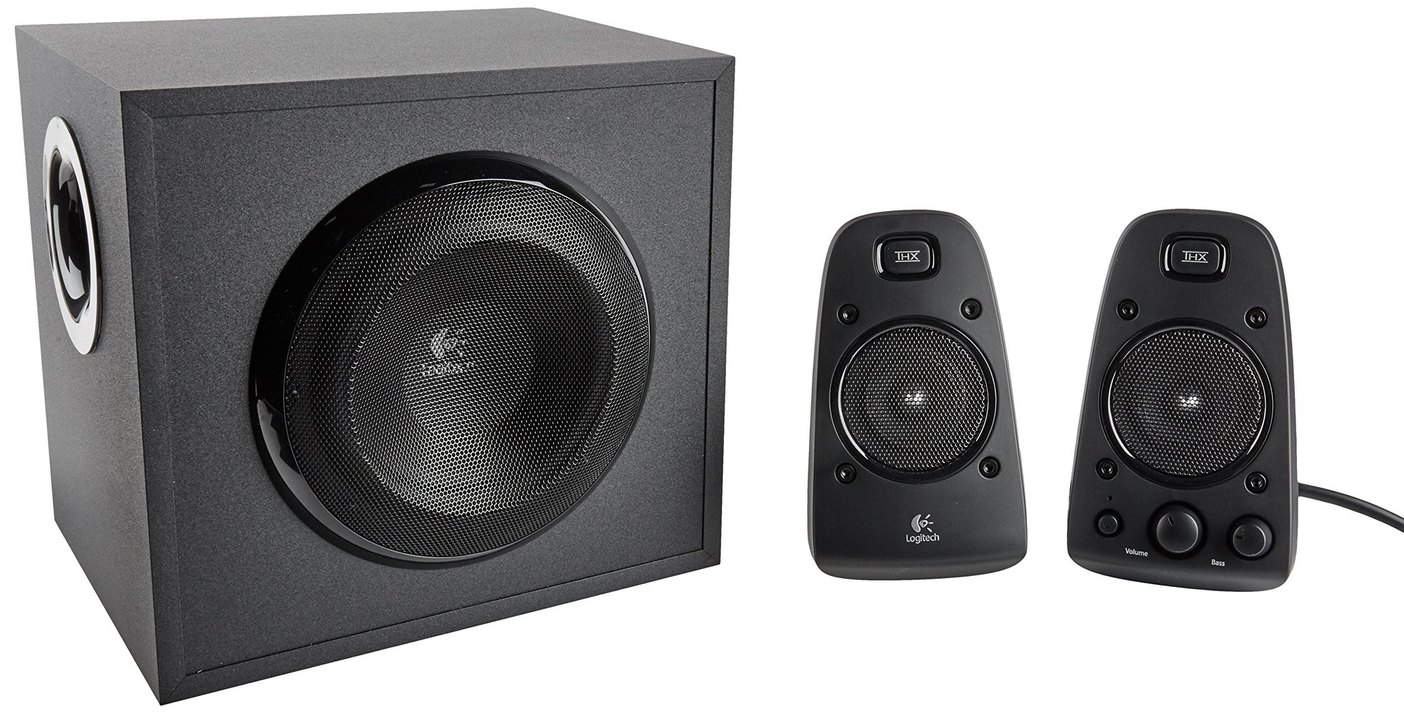 Details: Logitech Z623 Speaker System delivers 200 watts (RMS) of power in a THX-Certified system-for big, bold audio. Multiple inputs let you connect your music, movie, and gaming devices. You've got quality you can count on-these Logitech Z623 Speaker System have met strict performance standards to achieve THX certification. 200 watts (RMS) of power delivers sound as loud as you want it. You'll hear-and feel immersive audio that brings music, movies, and games to life. Easy, two-satellite setup and a powerful subwoofer give you big sound-even in large spaces. Make everything you listen to sound better with the Logitech Z623 Speaker System