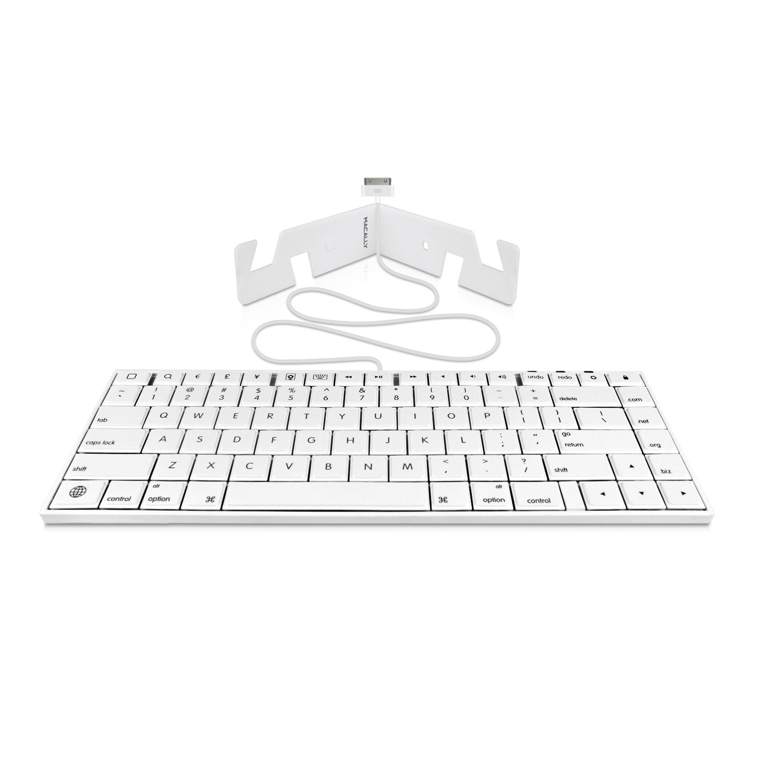 Details: The Macally iKey30 is a full size keyboard with a 30pin connector designed for iPod, iPod Touch and iPad. It includes a viewing stand for iPad in landscape and portrait orientation.