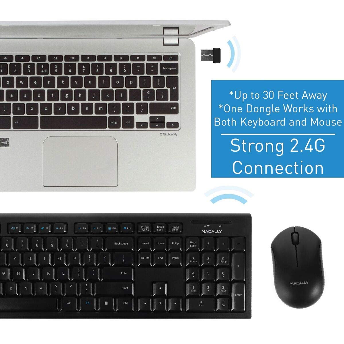 Macally Wireless Keyboard and Mouse Combo Bundle for PC, Desktop Computer, Laptop, Notebook, ChromeBook - Ultra Slim Cordless Keyboard Mouse Combo Set, Compatible with Windows 10/8/7/Vista/XP, etc.