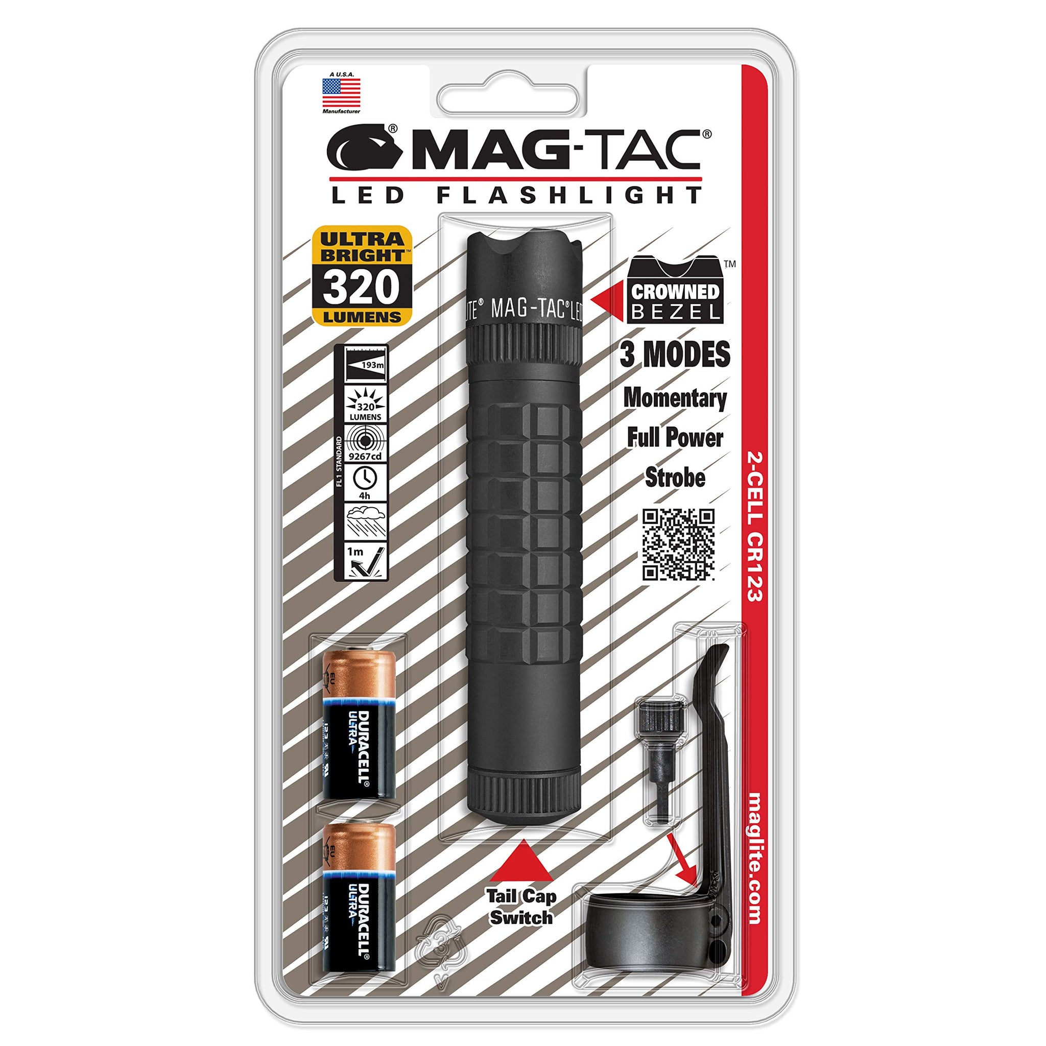 - Maglite Mag-Tac LED 2-Cell CR123 Flashlight - Crowned-Bezel, Matte Black