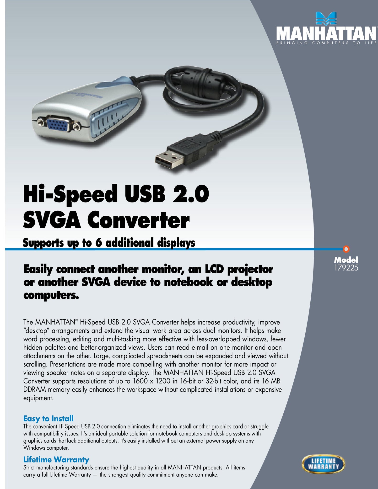 Manhattan 179225 Hi-Speed USB 2.0 SVGA Converter (Silver/Blue)