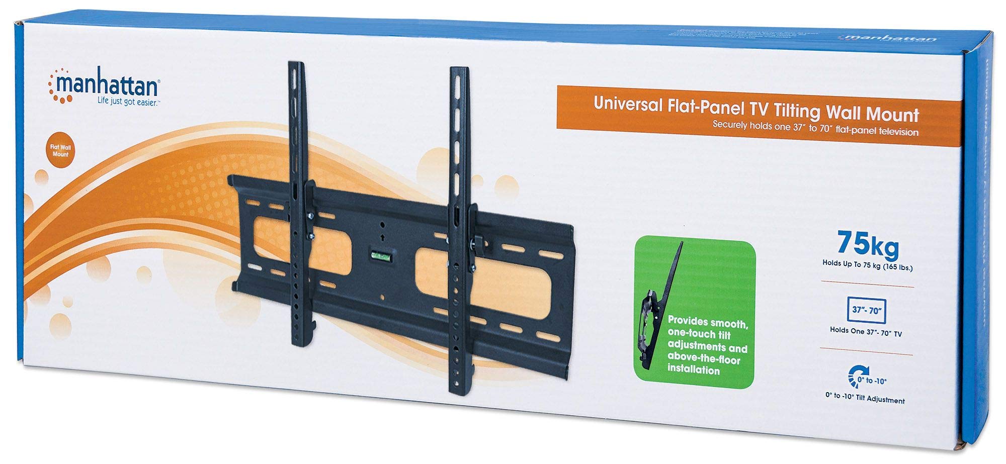 Details: Overcome odd floor plans, annoying glare and awkward furniture placements that can diminish flat-panel TV experiences. Manhattan Universal Flat-Panel TV Tilting Wall Mounts with smooth, one-touch tilt adjustments help keep images, contrasts and colors clear, sharp and defined. VESA-compliant and constructed of quality materials, Manhattan Universal Flat-Panel TV Tilting Wall Mounts fit a variety of display sizes with a secure and confident above-the-floor installation. An integrated locking system provides added security against theft. Ideal for residential, office, hospitality, classroom and conference room, digital signage and other commercial applications, Manhattan Universal Flat-Panel TV Tilting Wall Mounts bring high-performance LCD or plasma TV enjoyment front and center.
