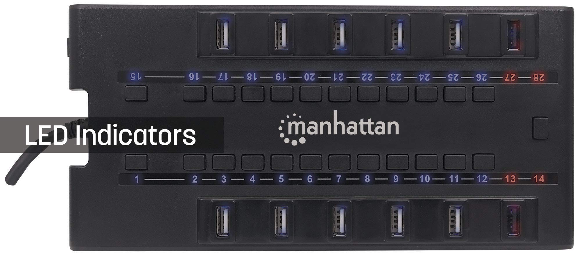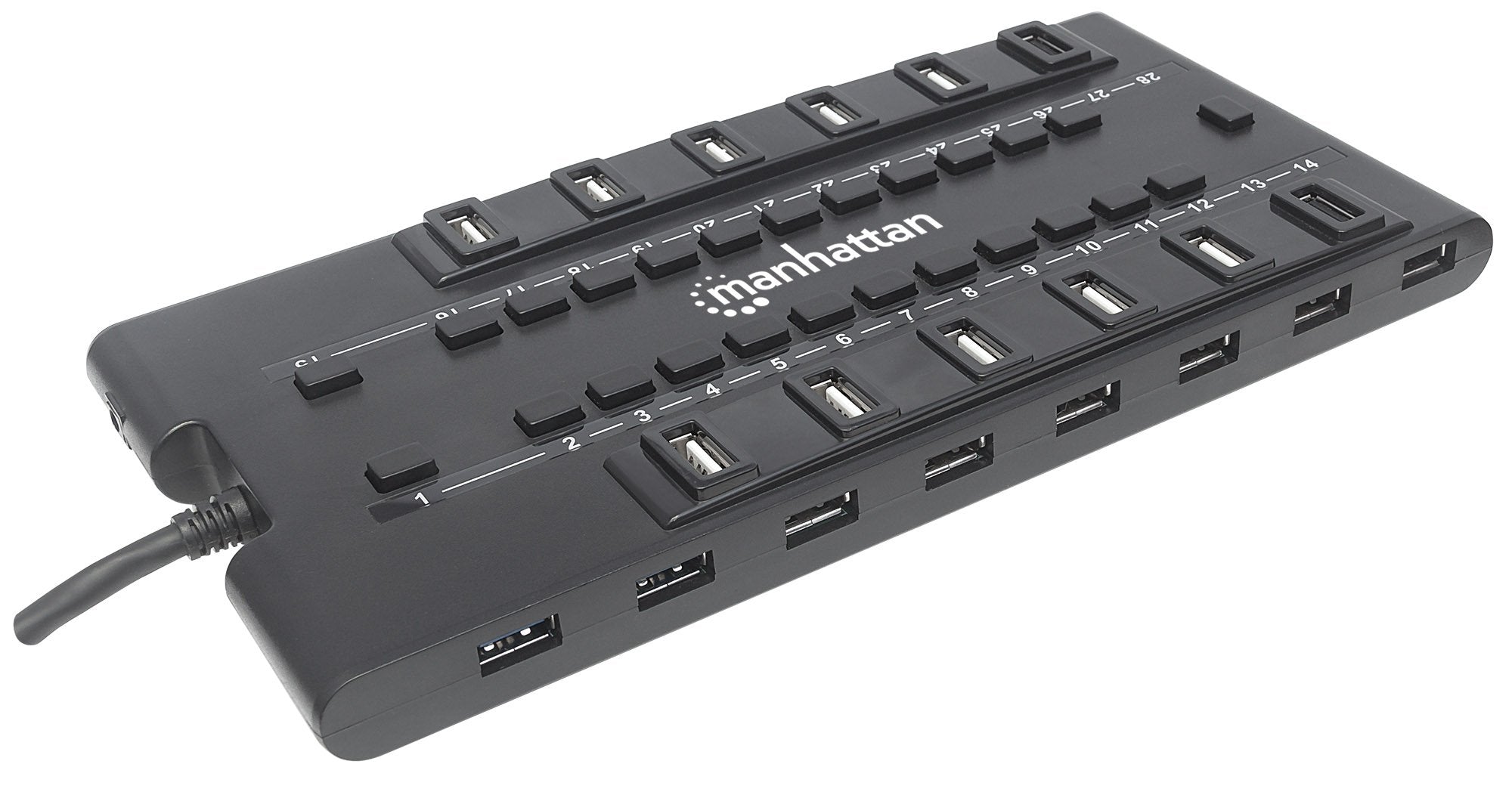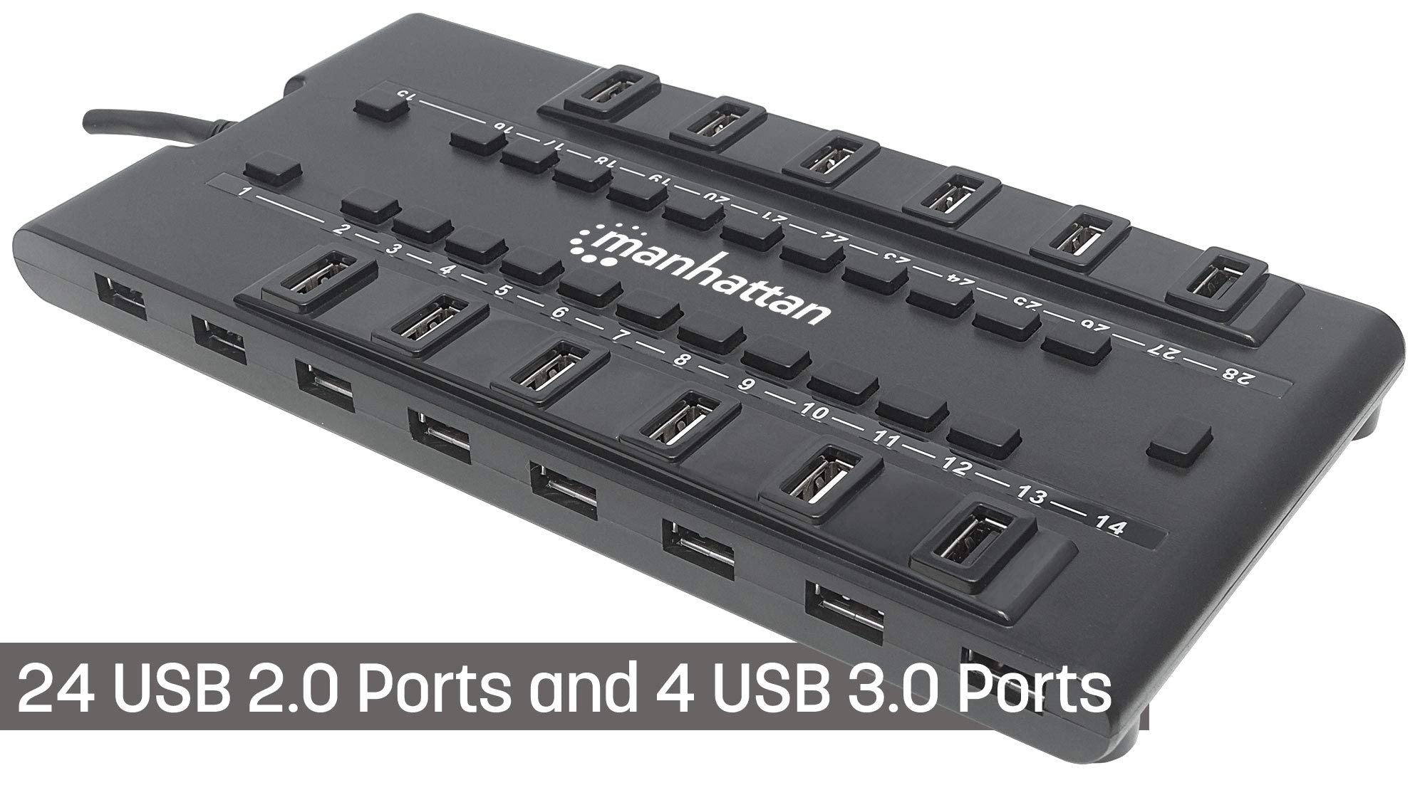 Manhattan Products 28-Port MondoHub II - Adds 24 USB 2.0 Ports and 4 USB 3.0 Ports to Any Computer, Included 5 V / 4 A AC Power Adapter, Push Button Activation per Port