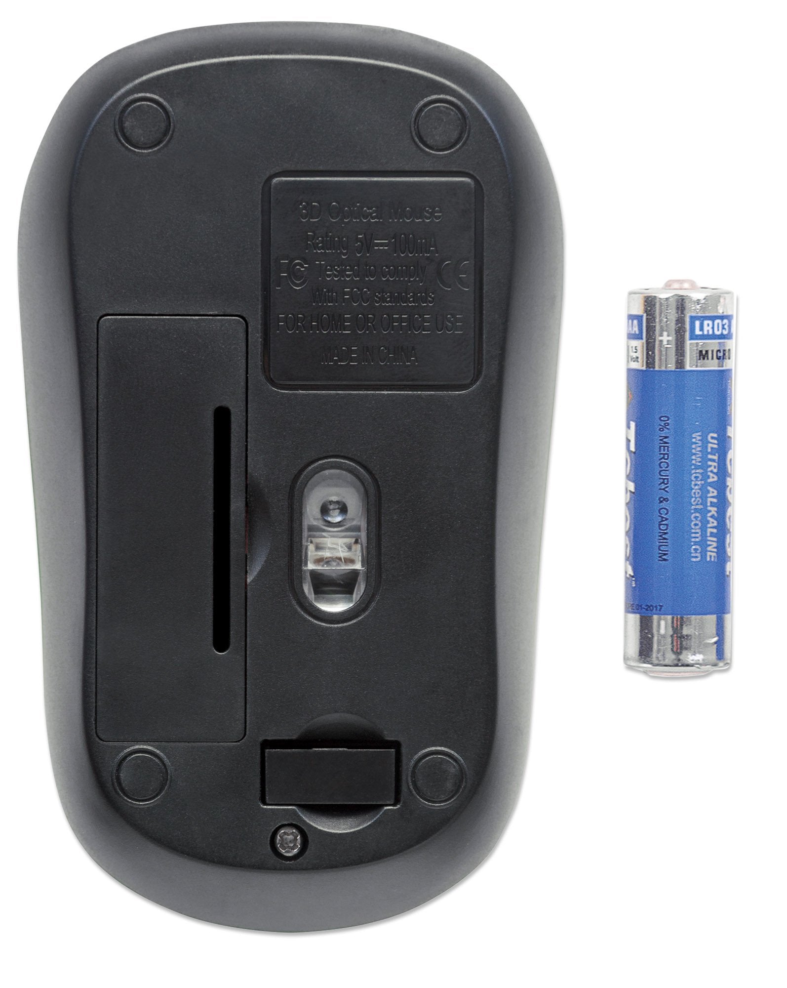 Manhattan Success Wireless Optical Mouse USB, 3 Buttons with Scroll Wheel, 1000 dpi, Blue/Black 179416