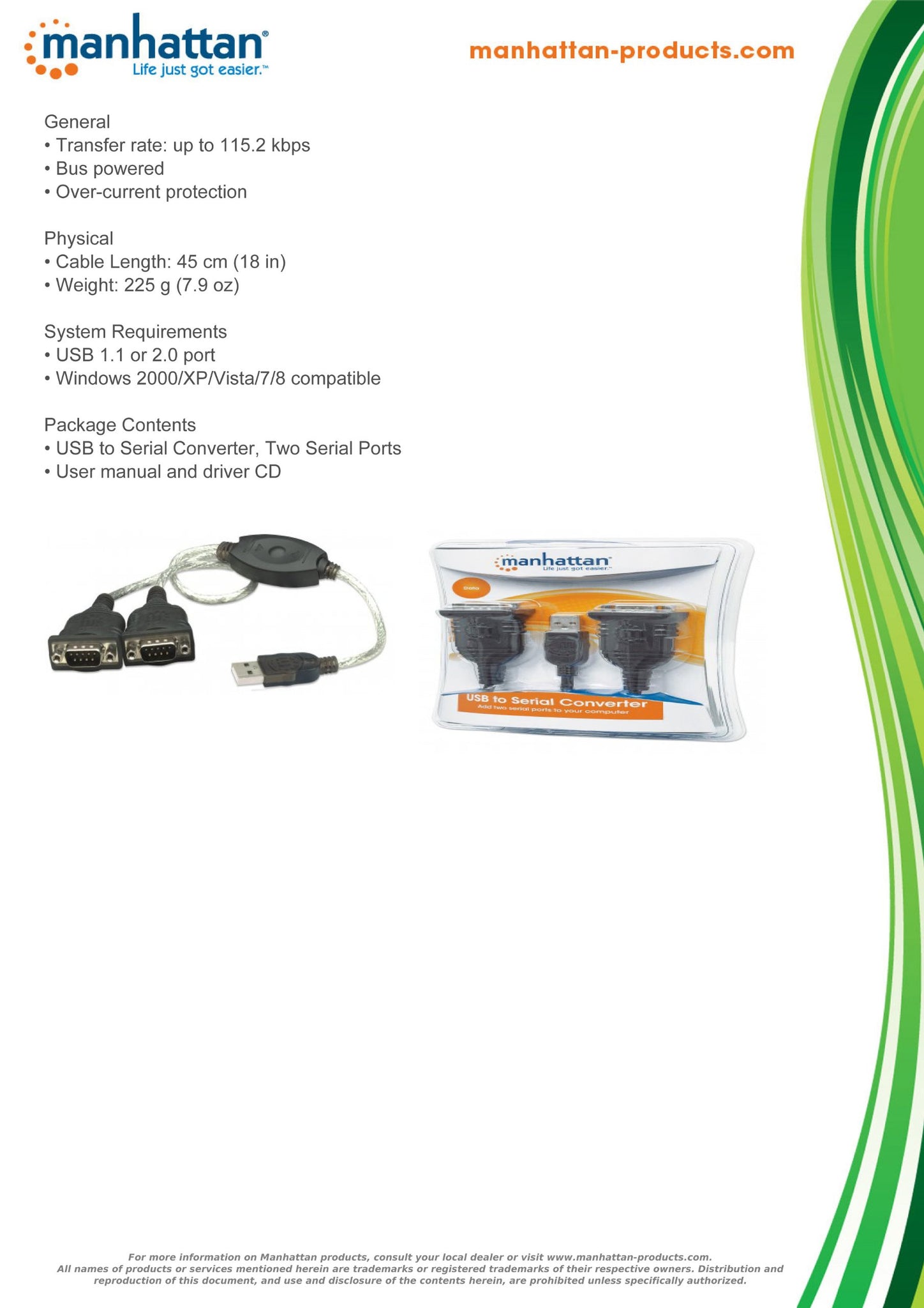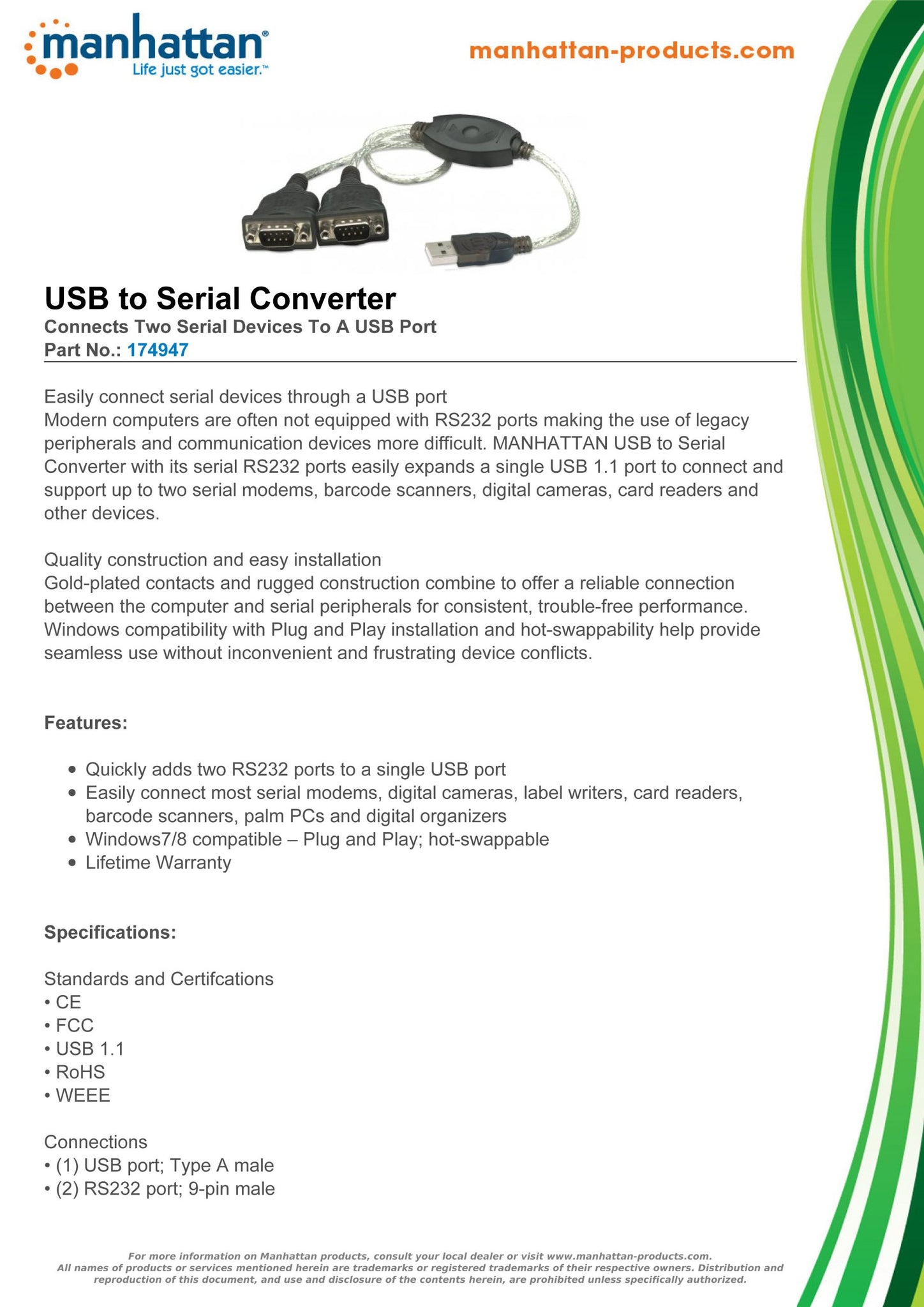 • Windows7/8 compatible - Plug and Play; hot-swappable