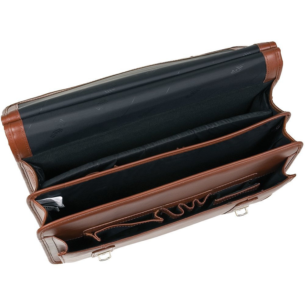 McKlein 80334 USA Halsted 15" Leather Double Compartment Laptop Briefcase Brown