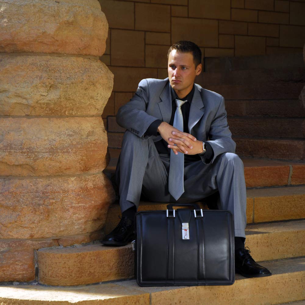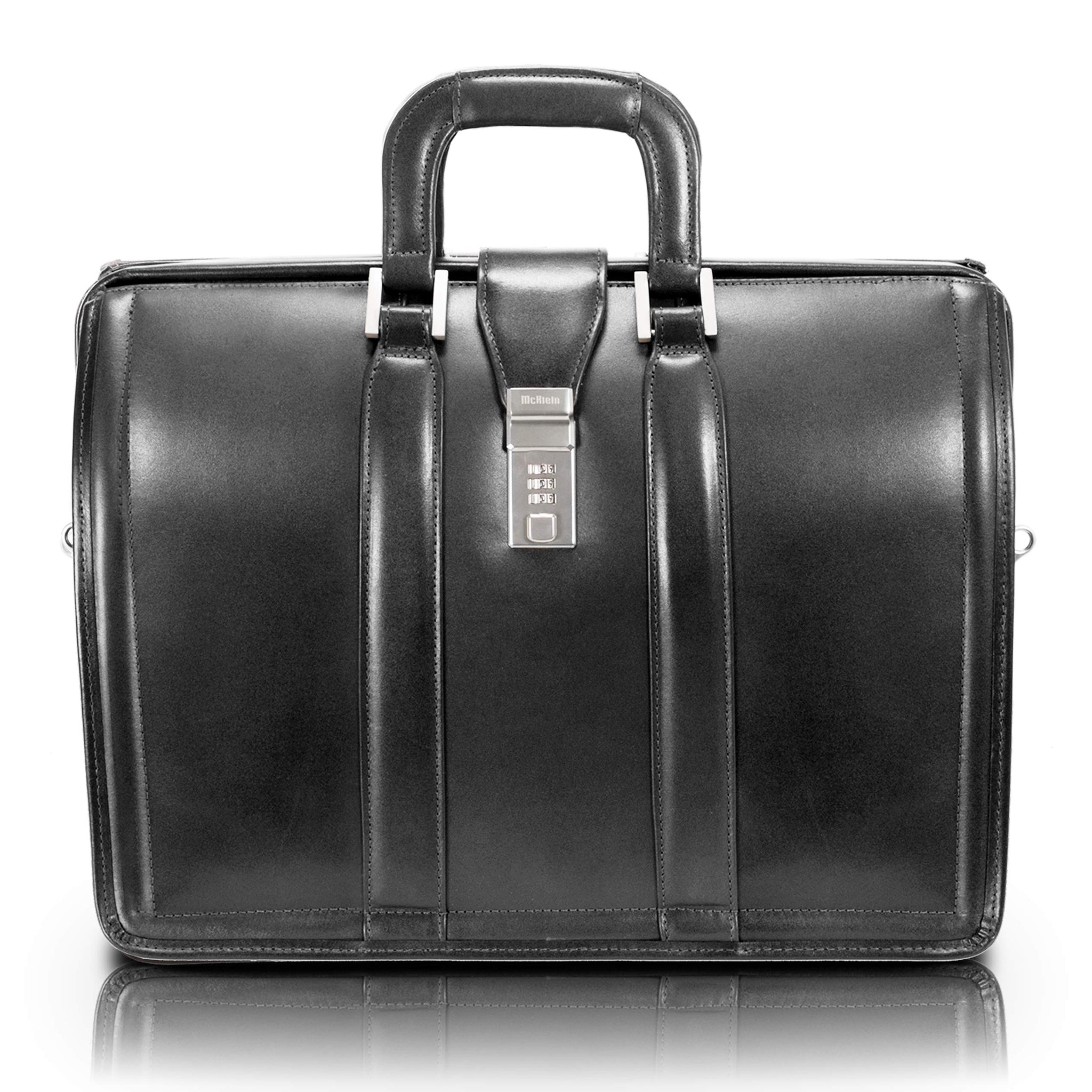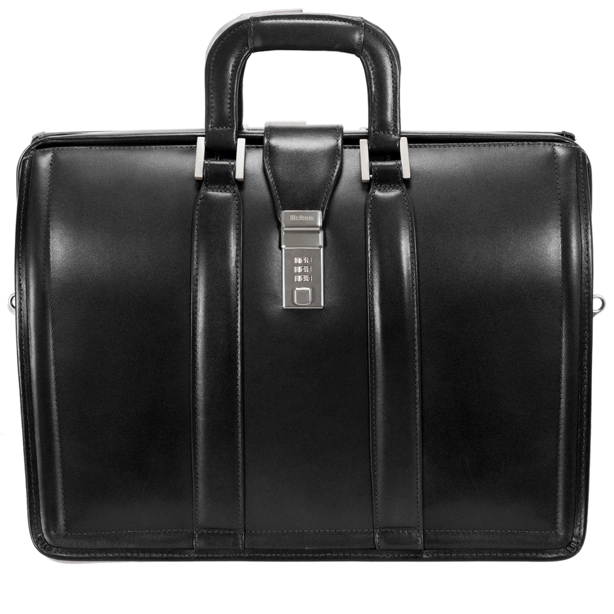 McKlein 83345 USA Morgan 17" Leather Litigator Laptop Briefcase Black