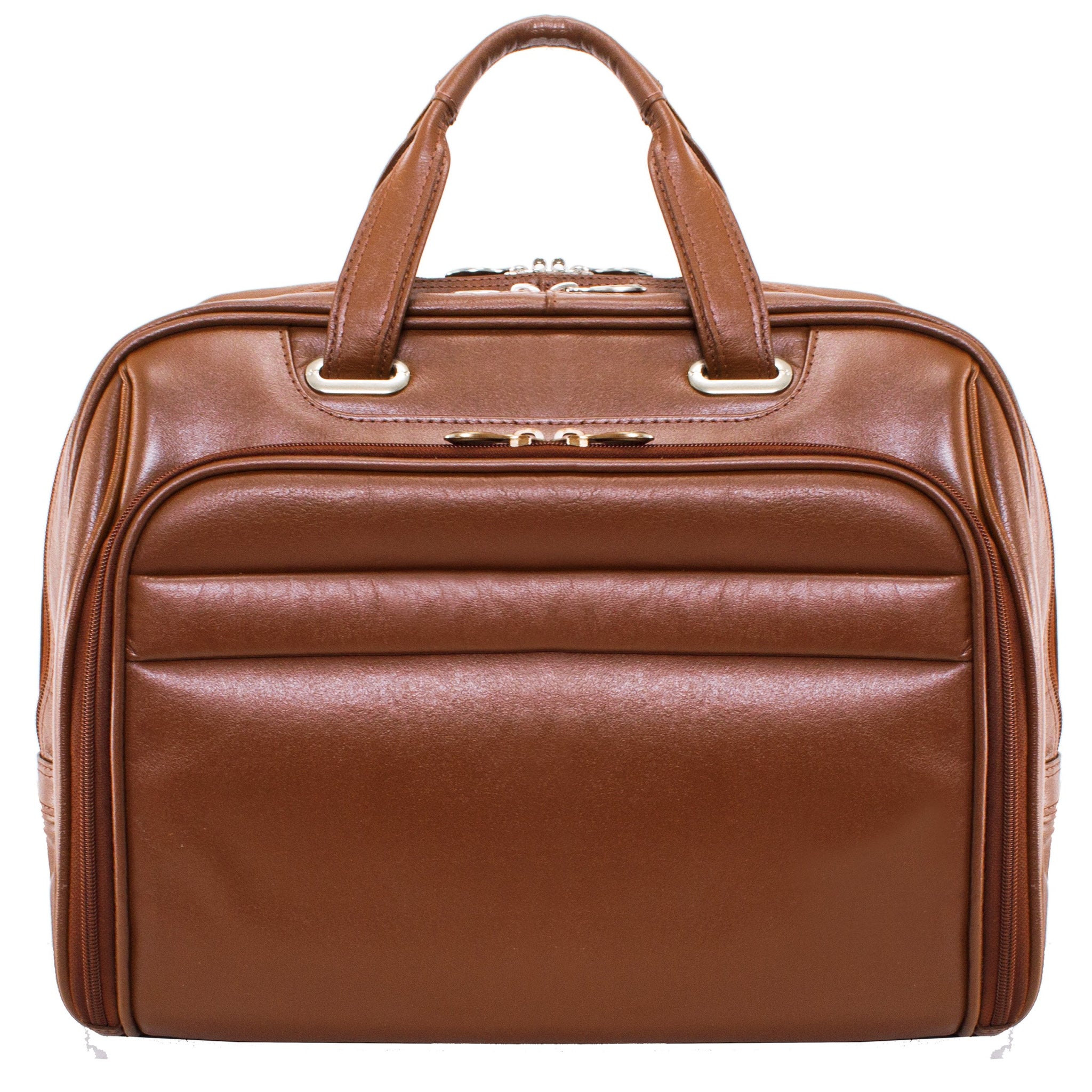 McKlein 86594 USA Springfield 15" Leather Fly-Through Checkpoint-Friendly Laptop Briefcase Brown