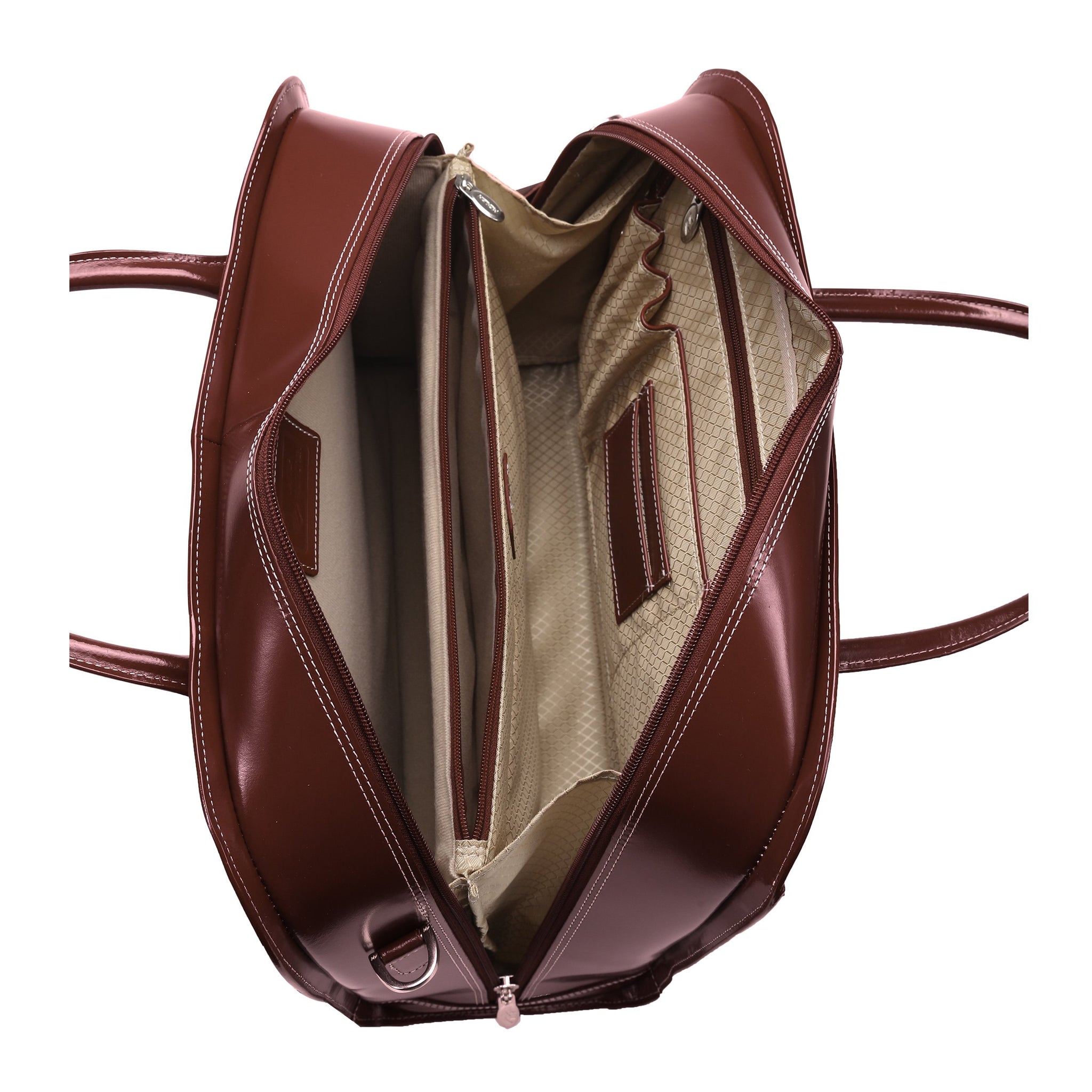 McKlein 94986 USA Willowbrook 15" Leather Patented Detachable -Wheeled Ladies' Laptop Briefcase Red