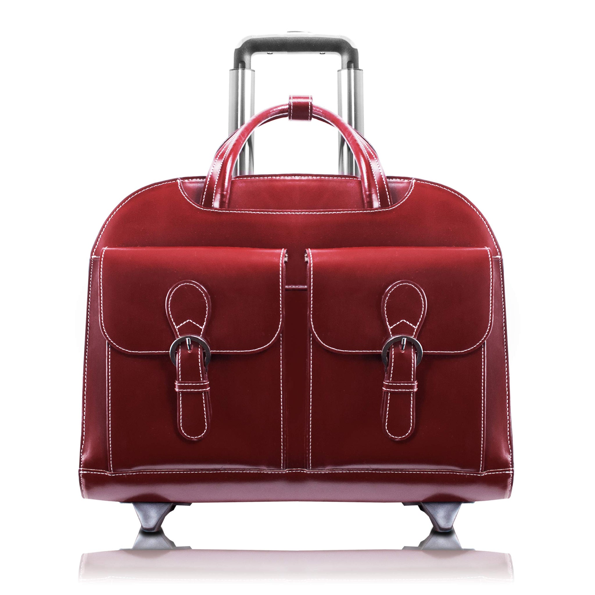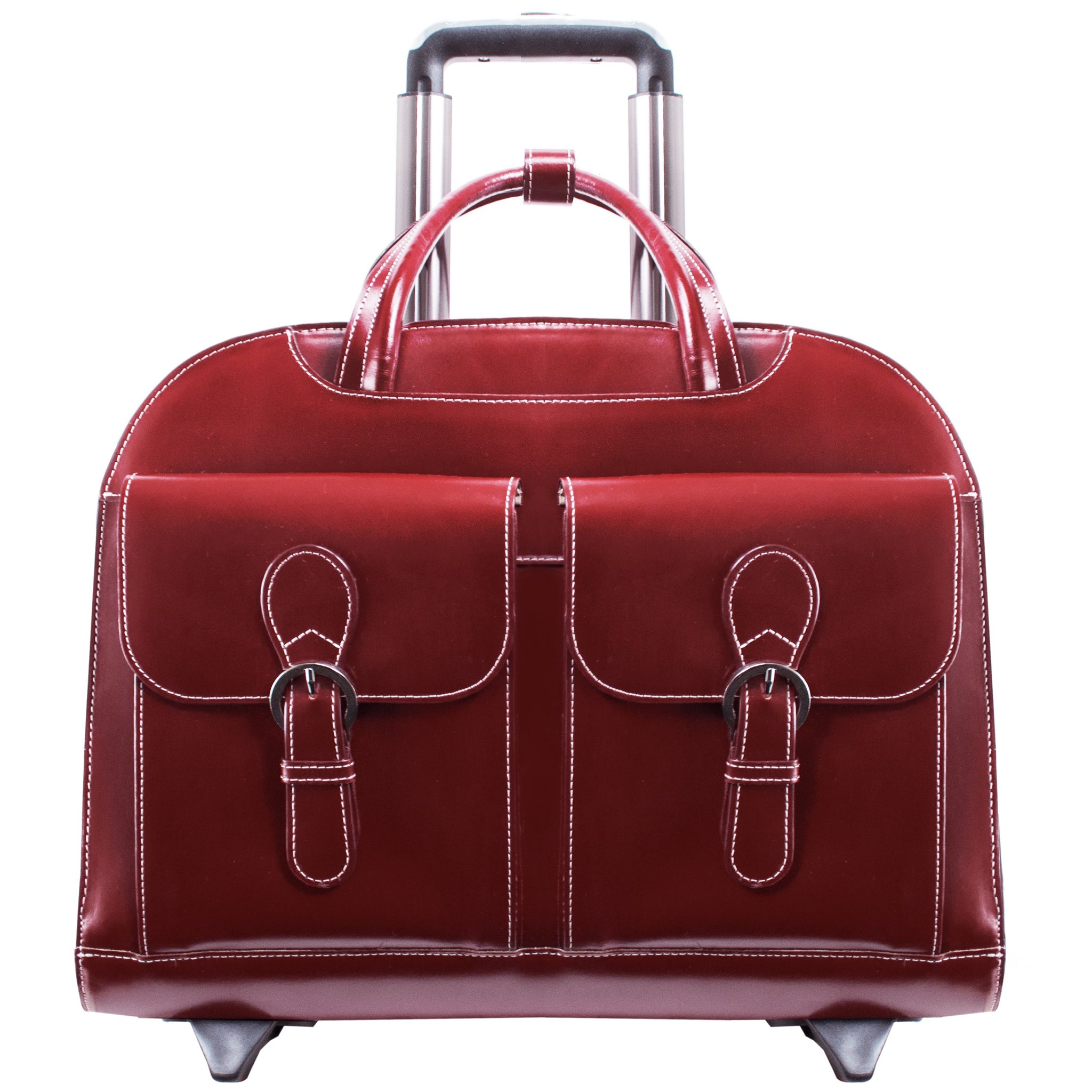 McKlein 96186A USA Davis 15" Leather Wheeled Ladies' Laptop Briefcase Red