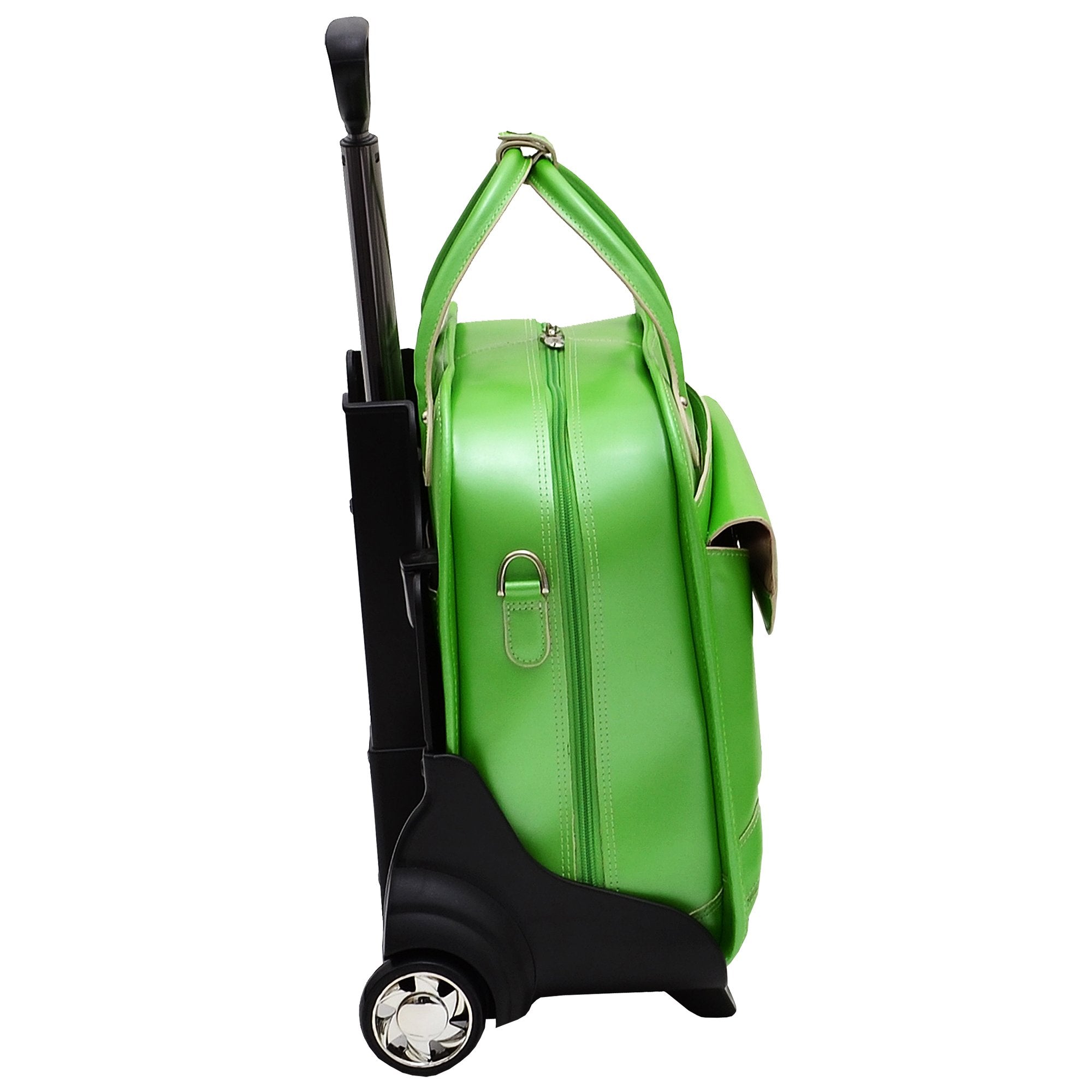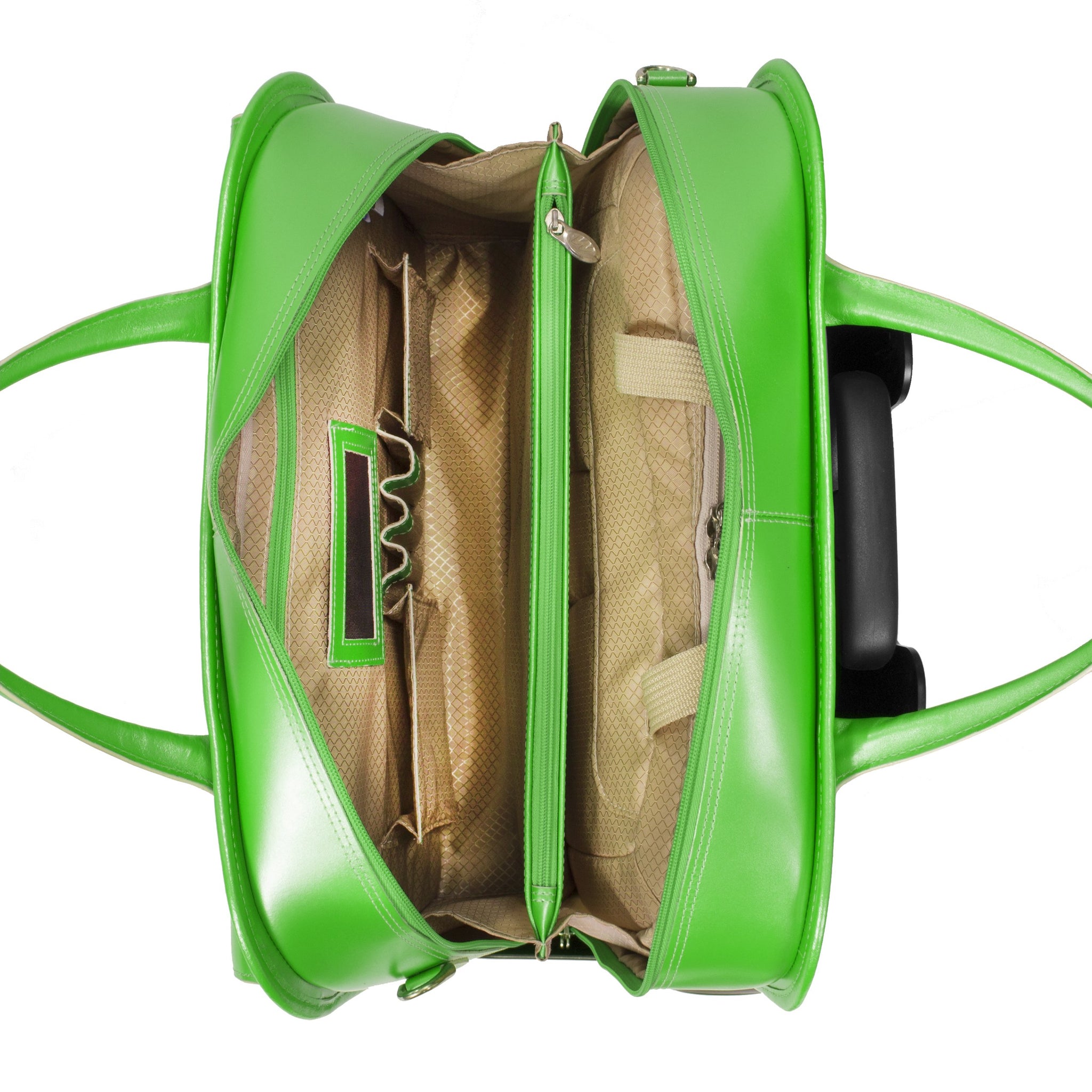 McKlein 96611 USA Lakewood 15" Leather Fly-Through Checkpoint-Friendly Patented Detachable -Wheeled Ladies' Laptop Briefcase Green