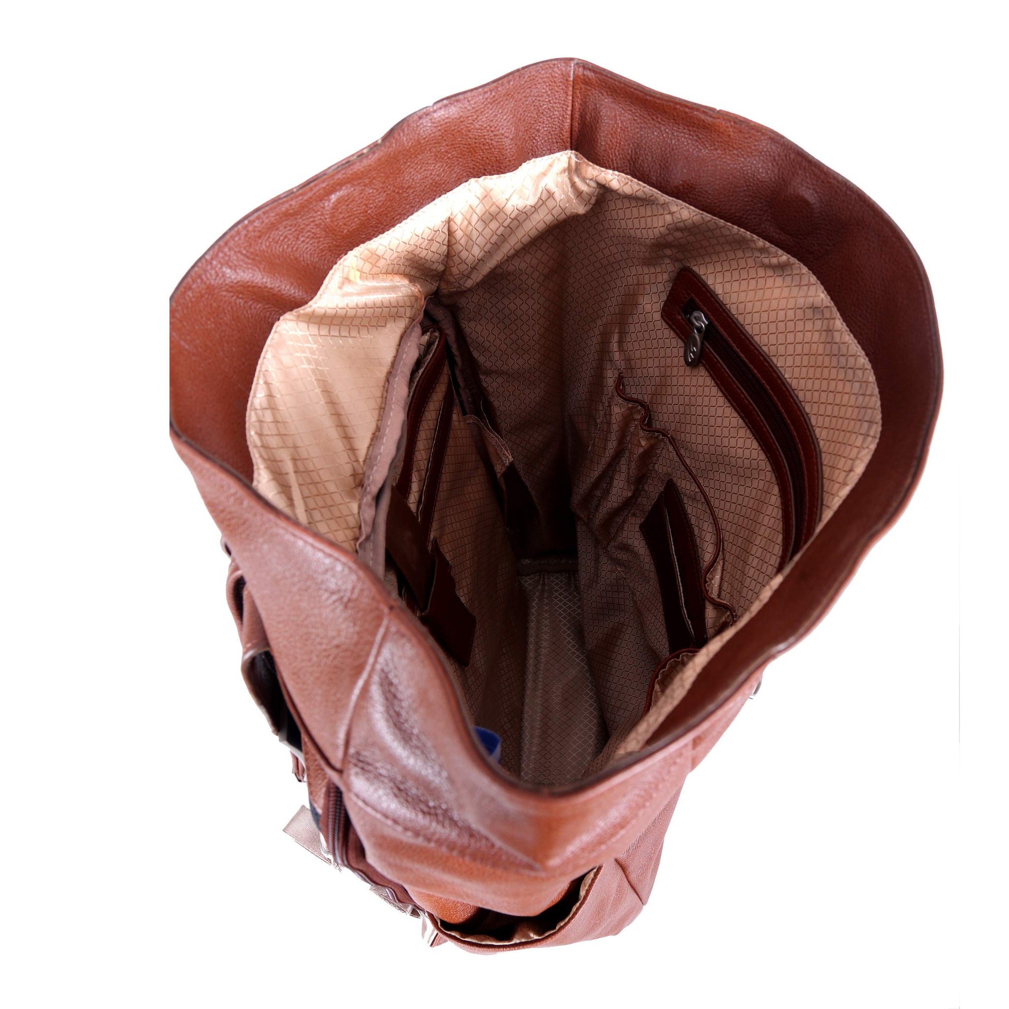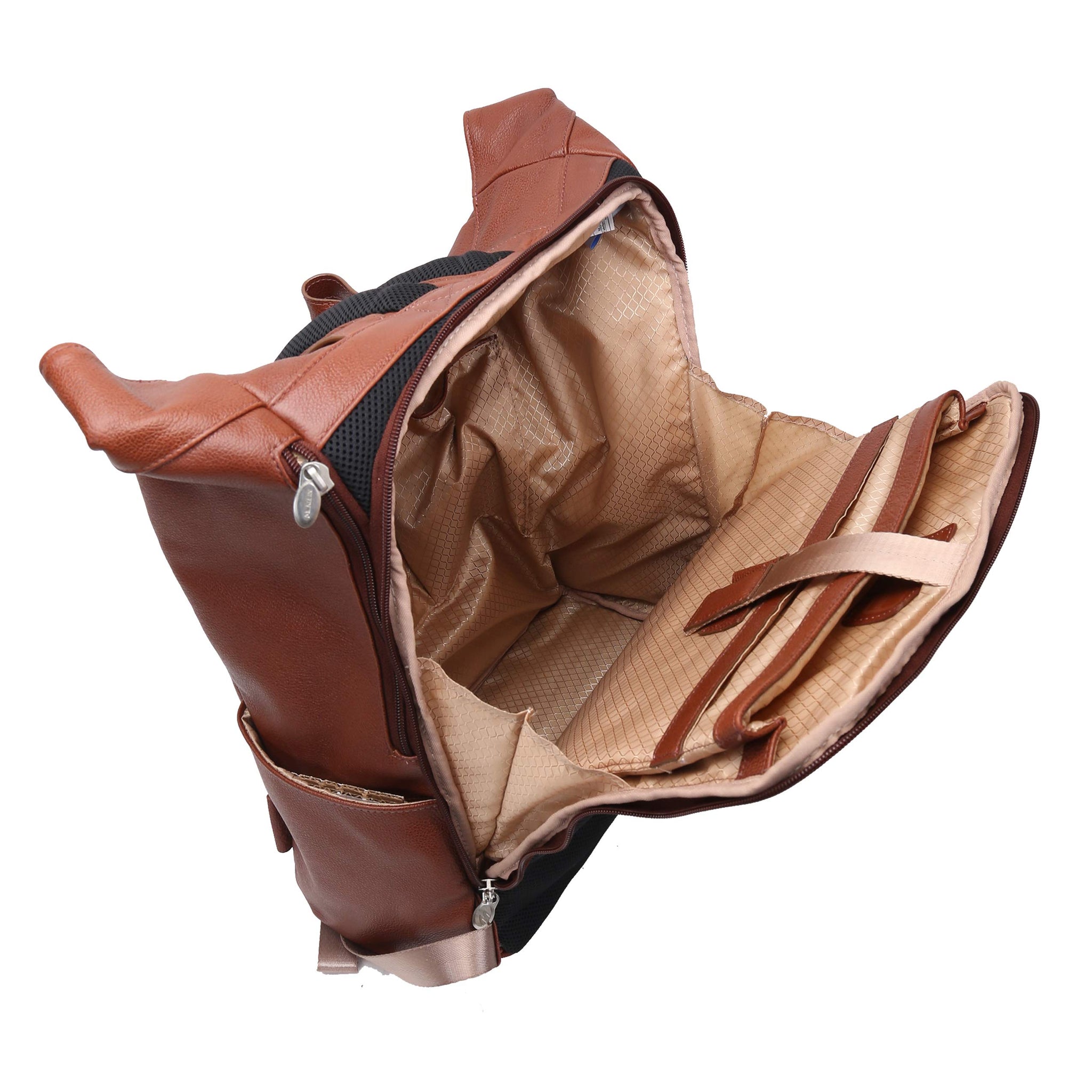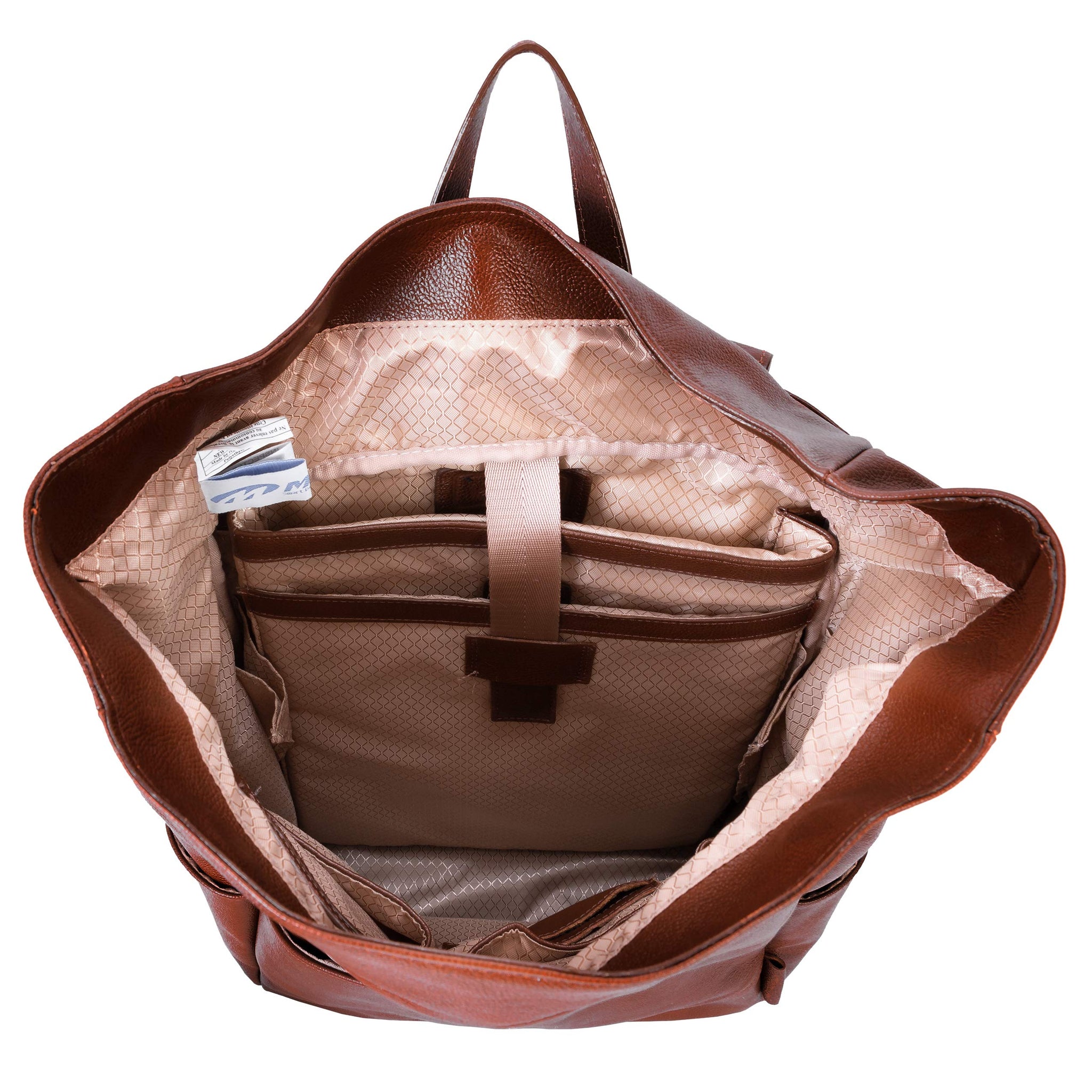 - Leather dual access laptop backpack with flap slip lock closure