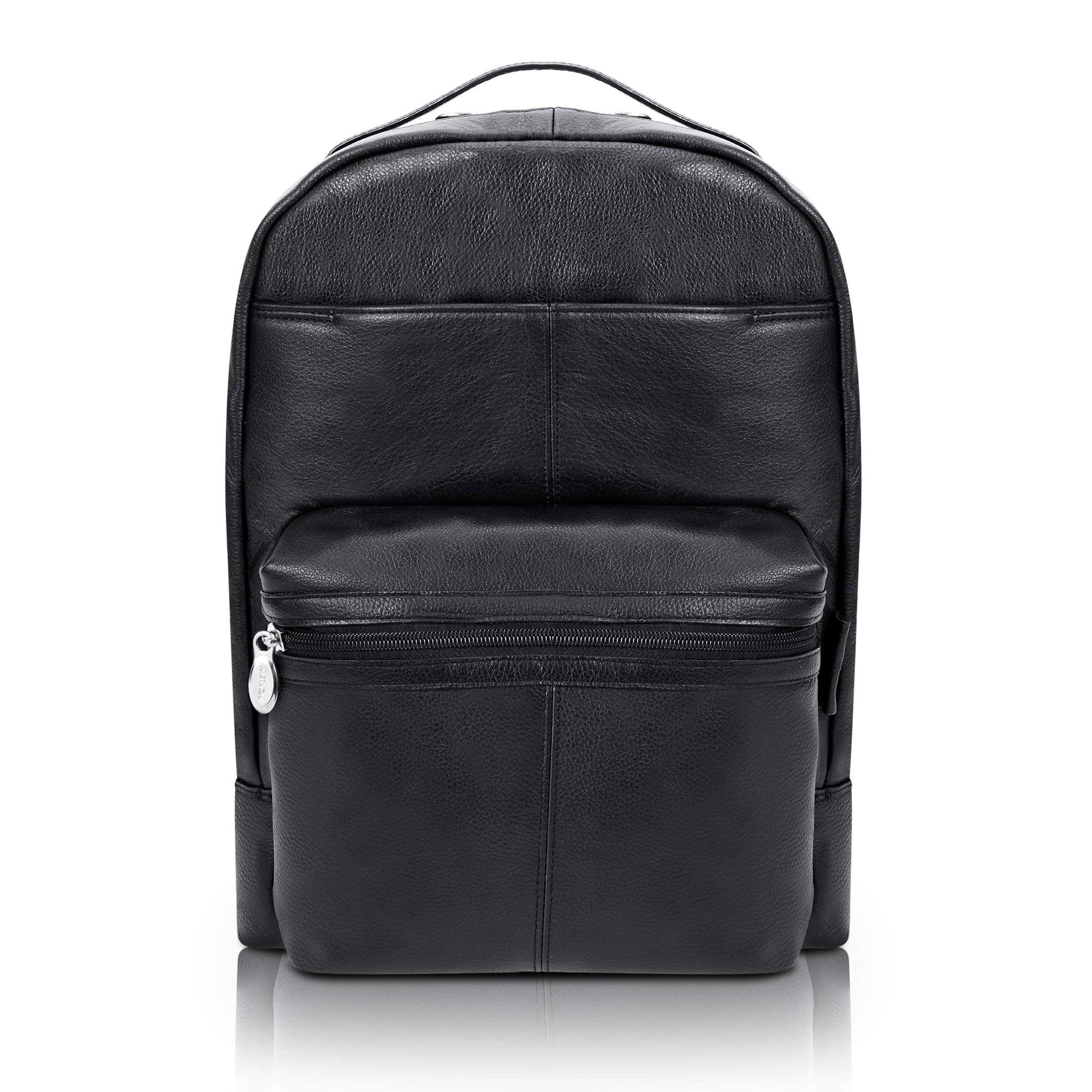 McKlein Pebble Grain Calfskin Leather, Dual Compartment Laptop Backpack, Black (88555)