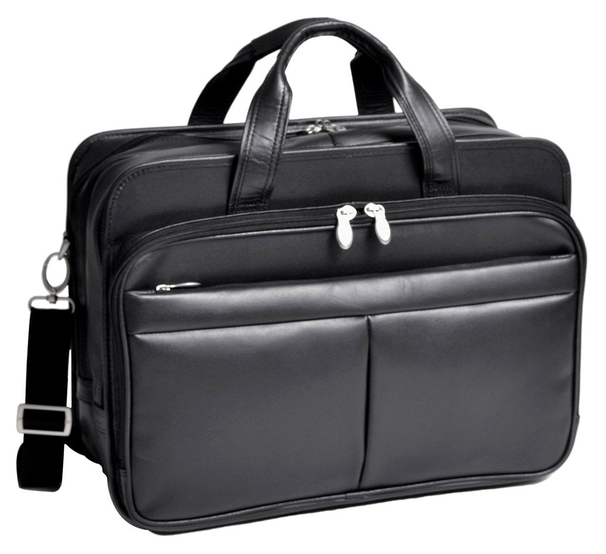 Details: Mcklein, R Series, Walton, top grain cowhide leather, 17" Leather expandable double compartment laptop briefcase w/ Removable sleeve, black (83985)
