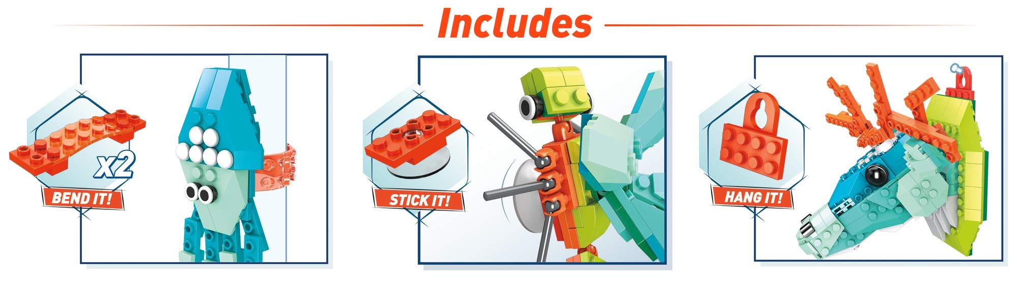 - 4 special pieces include 2 bendy brick pieces, a hanger brick and a suction cup brick to build in inventive new ways