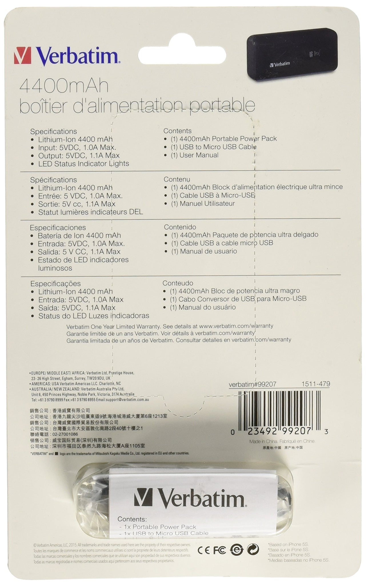 - Verbatim Portable Power Pack - External battery pack Li-Ion 4400 mAh - black