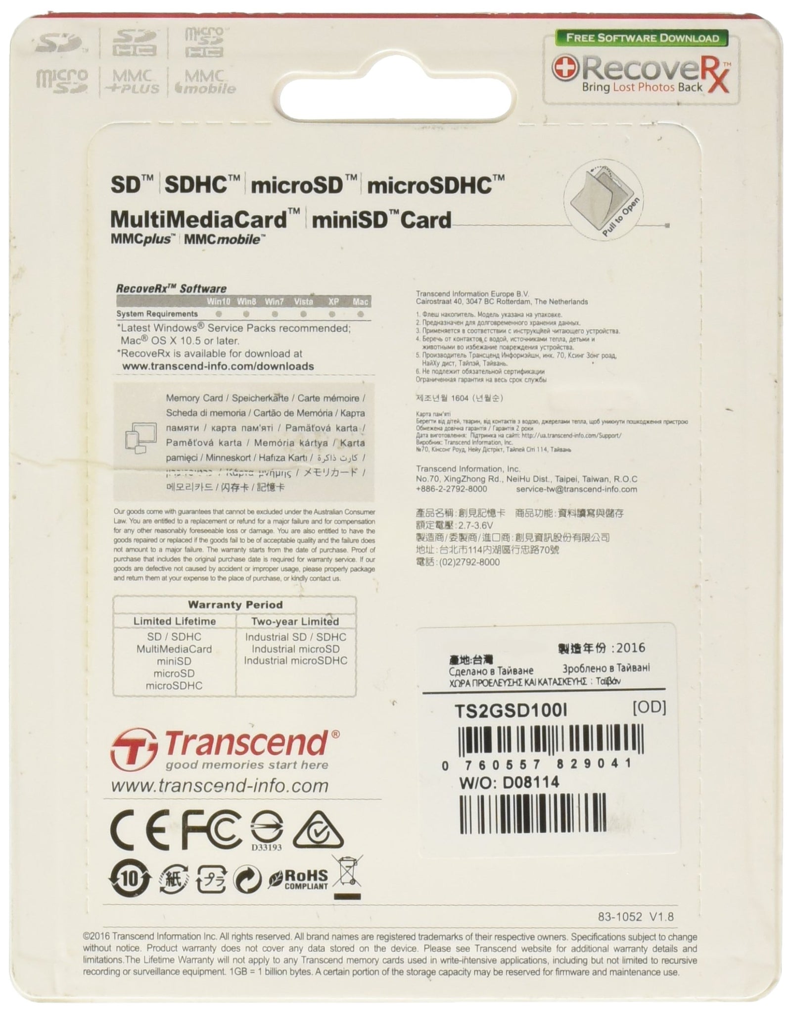 Details: Transcend 2 GB SD - 1 Card - 100x Memory Speed