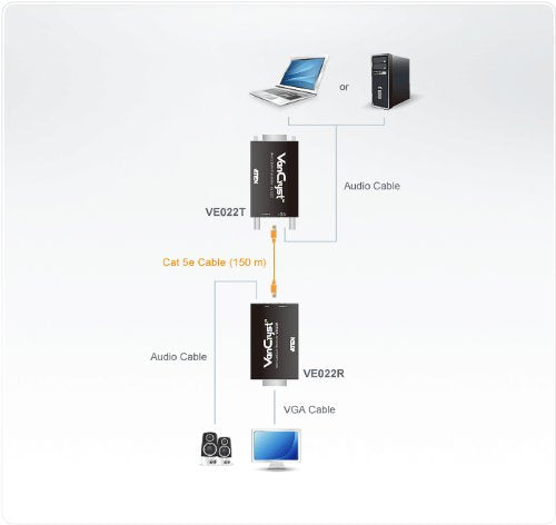 - Features:1x VE022T Mini Cat 5 A/V Transmitter, 1x VE022R Mini Cat 5 A/V Receiver