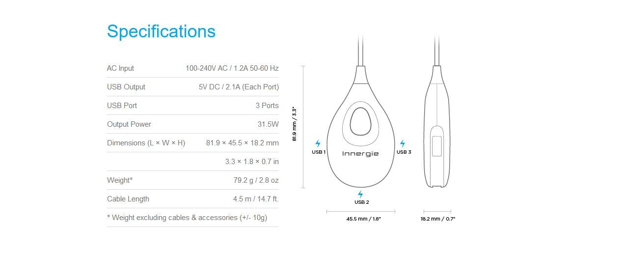 Details: Innergie LifeHub 3 USB Power Hub with Extended Reach