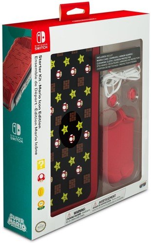 Details: The Nintendo Switch Starter Kit has everything you need for endless hours of Switch gaming. Featuring a sturdy case with 3D molded details to store and protect your Switch console, including a complete screen protection kit, you can keep your console looking great at all times. The Nintendo Switch Starter Kit includes a screen protector, earbuds, and character-branded Joy-Con Armor Guards and thumb caps, cleaning cloth, and applicator.