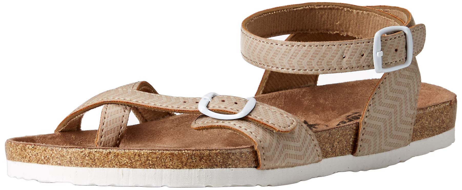 Details: The price has a crisscross loop around the toe but brings sandal functionality with a heelless, adjustable strap securing the ankle. Style, comfort and support comes from a micro-suede footbed, blended cork midsole, and eva sole.