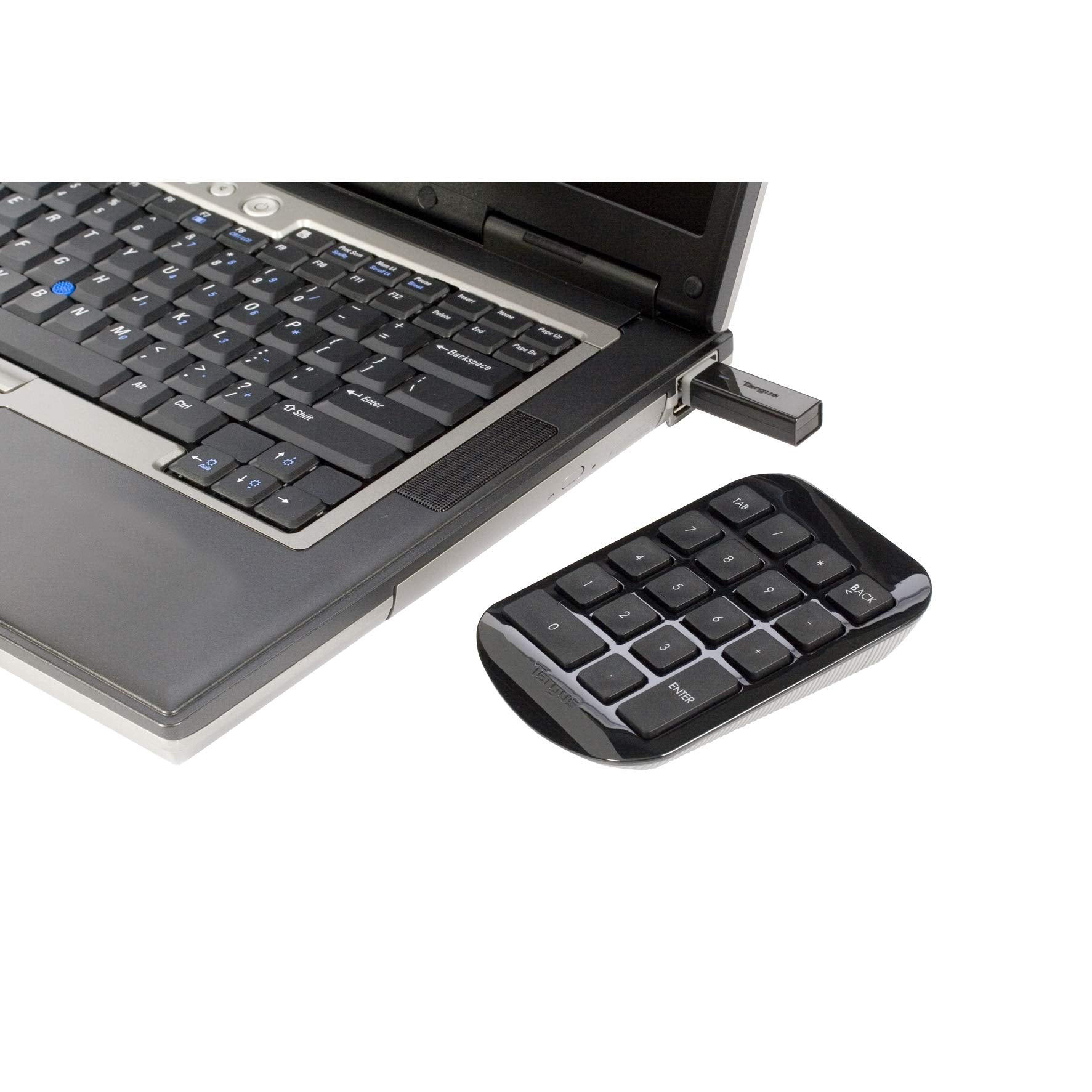 The Targus Wireless Numeric Keypad allows users to type numbers into spreadsheets and other applications quickly and easily. The full-size 19mm keys improve speed and accuracy by making it easier to locate and press the numbers you are looking for. The integrated ergonomic tilt provides added comfort which helps reduce strain after a long work day.
