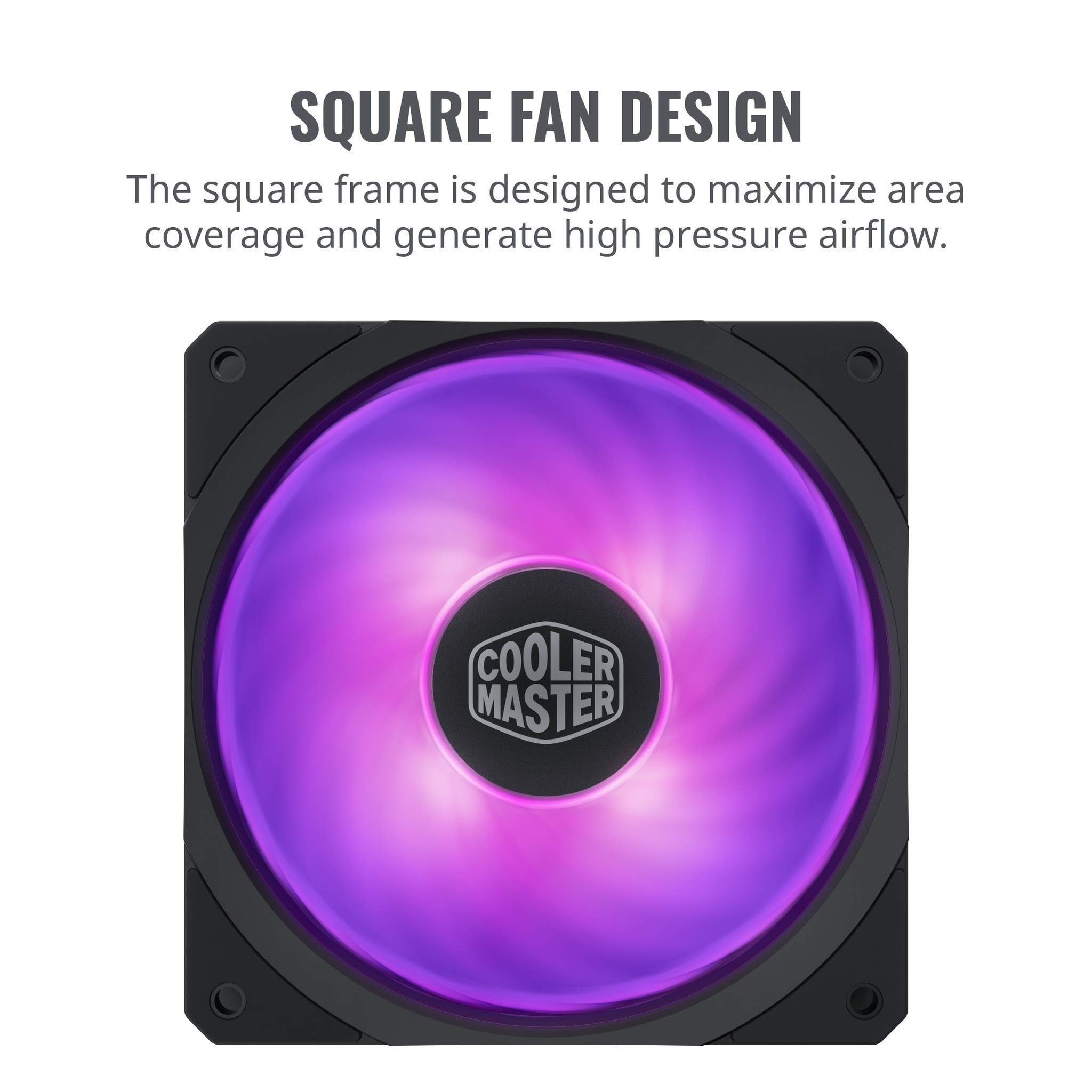 open box Cooler Master MasterFan SF120R RGB 120mm Square Frame Fan w/RGB LEDs, Hybrid Blade Design, Cable Management and PWM Control Fan