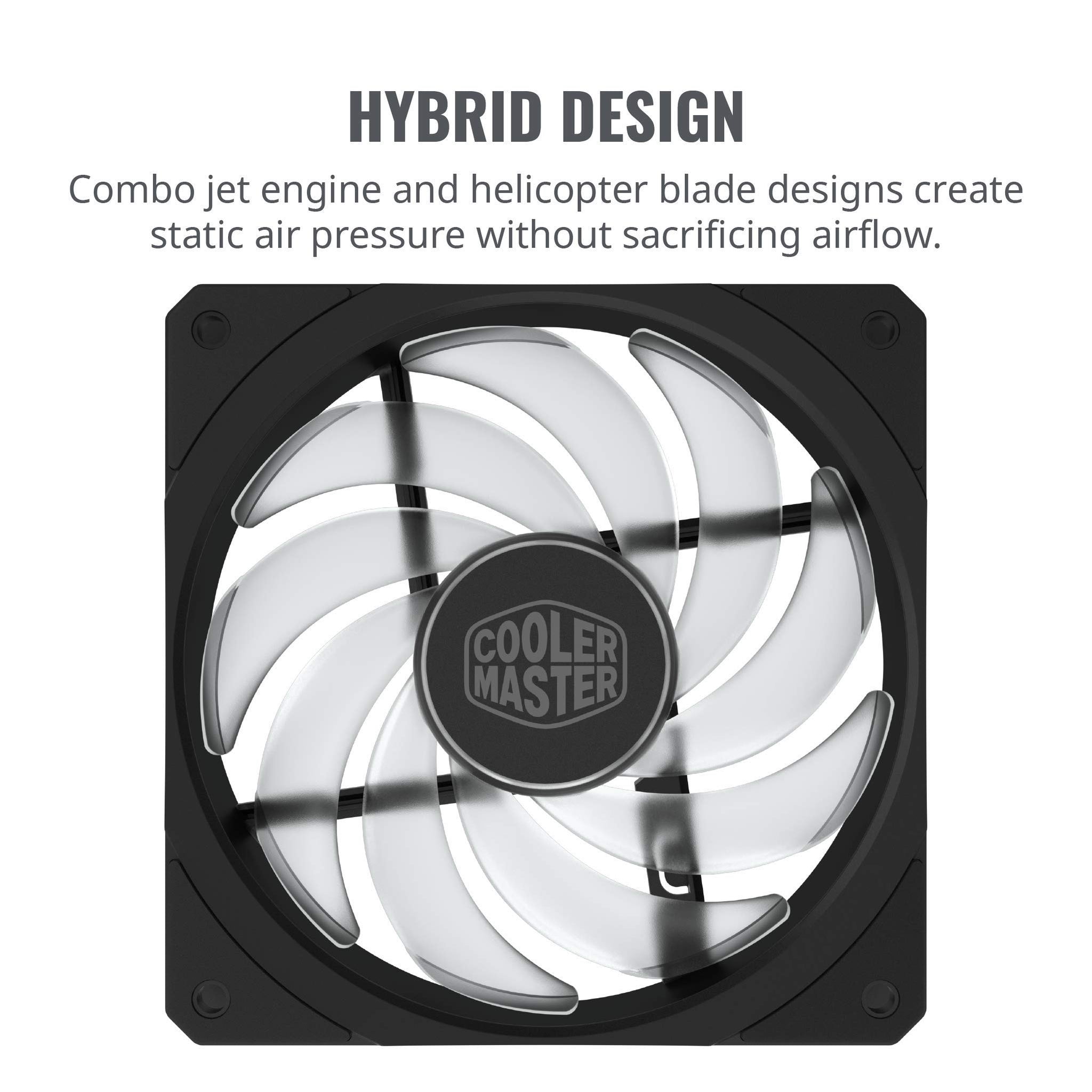 Details: Cooler Master Master Fan SF120R RGB, this is our first Master Fan with a square frame design. The square frame is designed to maximize area coverage and generate high pressure airflow, ideal for all CPU coolers. Compatible with Addressable RGB-enabled PCs, our fans are certified compatible with Asus Aura, Gigabyte Fusion, AS Rock RGB, and MSI RGB. The fan blades draws from both jet engine and helicopter blade designs. The blades propel air farther than the air pressure design while still retaining more static pressure than air flow. SF120R ARGB series is fitted with multiple layers of our exclusive noise reduction technologies to cool your entire case and its components in silence.