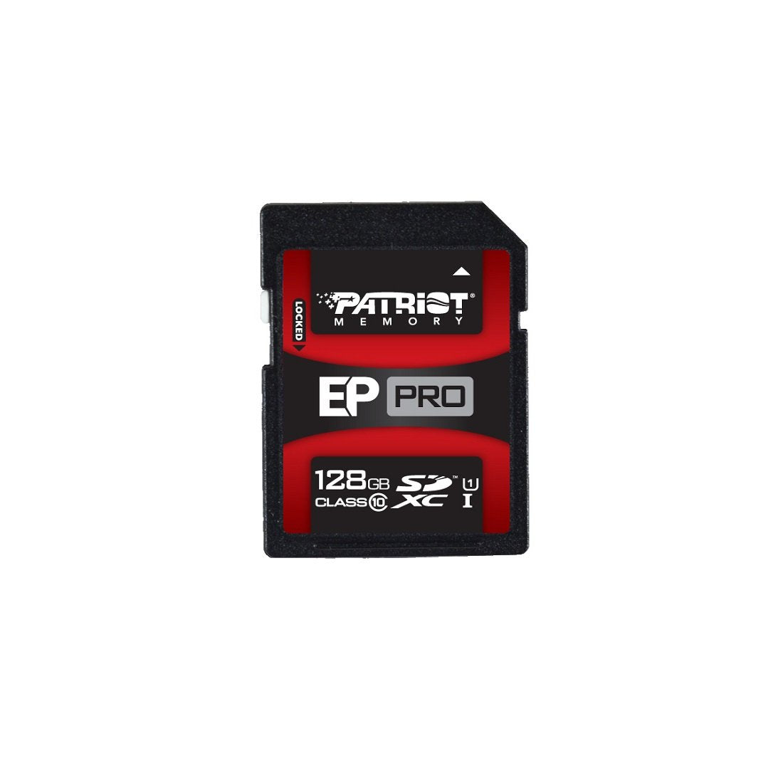 Details: EP Pro SDXC memory card from Patriot, with 128GB storage capacity. Great for HD video recording and high-resolution photography, this SDXC memory card offers read speeds up to 90MB/sec and write speeds up to 50MB/sec. UHS-I compliant high-speed memory card, backed by 5 years warranty.