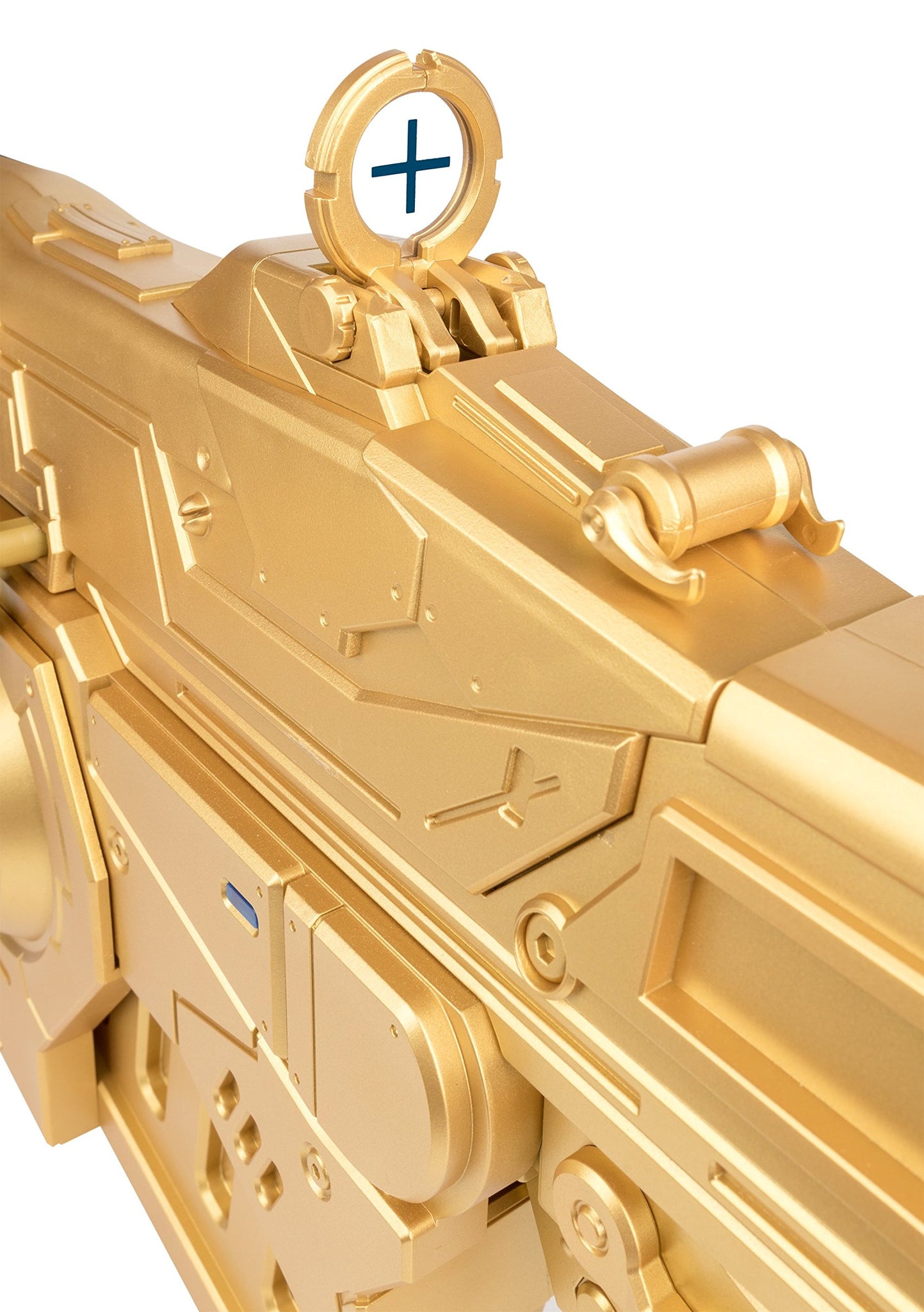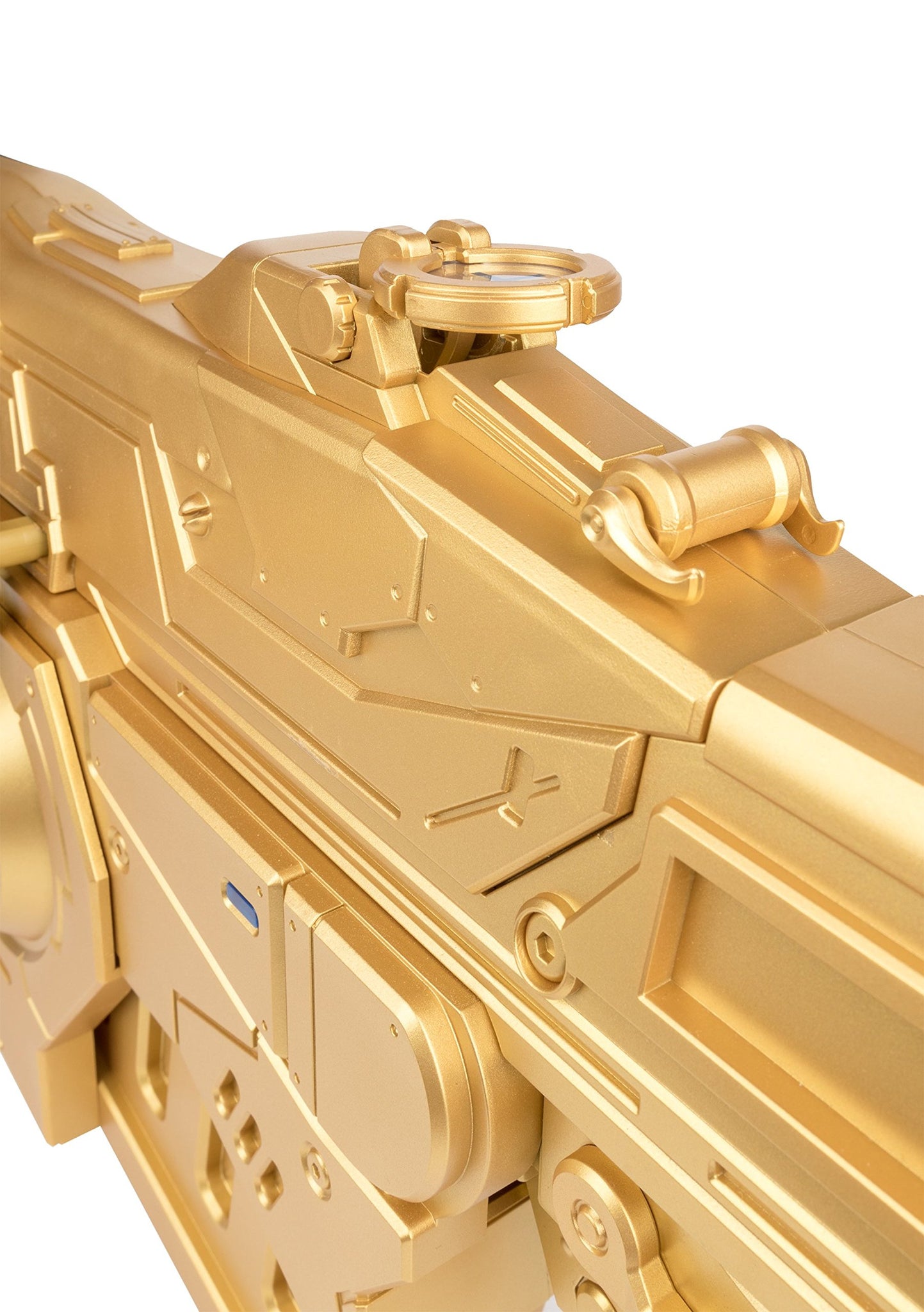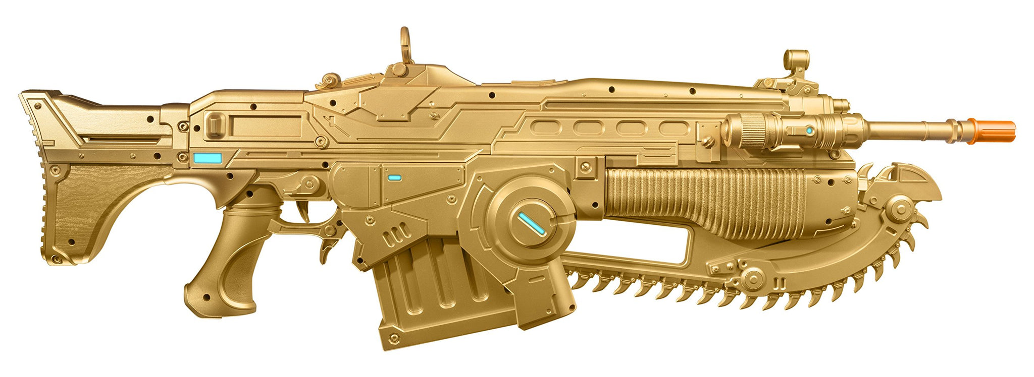 - Gold painted Gears of War 4 1:1 Prop Replica Customized Lancer Authentic Lancer firing & chainsaw sound FX Adjustable sight, levers, triggers and switches
