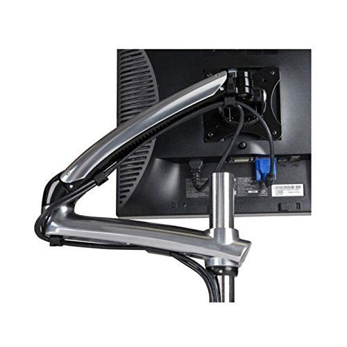 - Articulating arms allow monitors to be adjusted to the perfect ergonomic position to help reduce eye, back and neck strain^Smooth and effortless arm movement provided by bushings at all pivot points^Expertly finished polished aluminum arm and base with chrome pole^Integrated cable management provides clean, professional installation finish