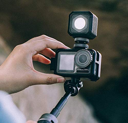 - Versatile Compatibility: An action camera interface at the bottom of the cage connects any shooting device with a universal interface, such as a tripod or selfie stick. There are two cold shoes on the top and side of the cage respectively that offer access to the camera, light, and microphone.
