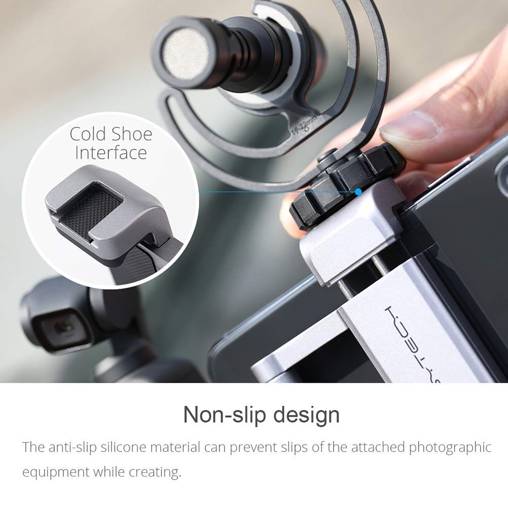 The PGYTECH Osmo Pocket Phone Holder+ effectively fixes Osmo Pocket to a smartphone to avoid damaging the smartphone adapter. Connect camera lights, microphones, tripods, and other equipment through the cold shoe port and standard 1/4-inch thread pitch, enriching the creative experience.Specifications: