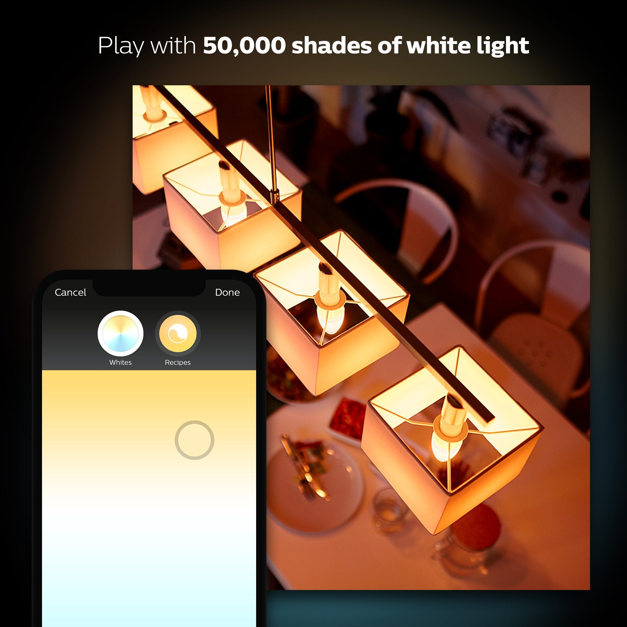 - With wireless control on your smartphone or tablet, choose the perfect light setting for any mood or activity such as reading or relaxing, concentrating, or energizing.
