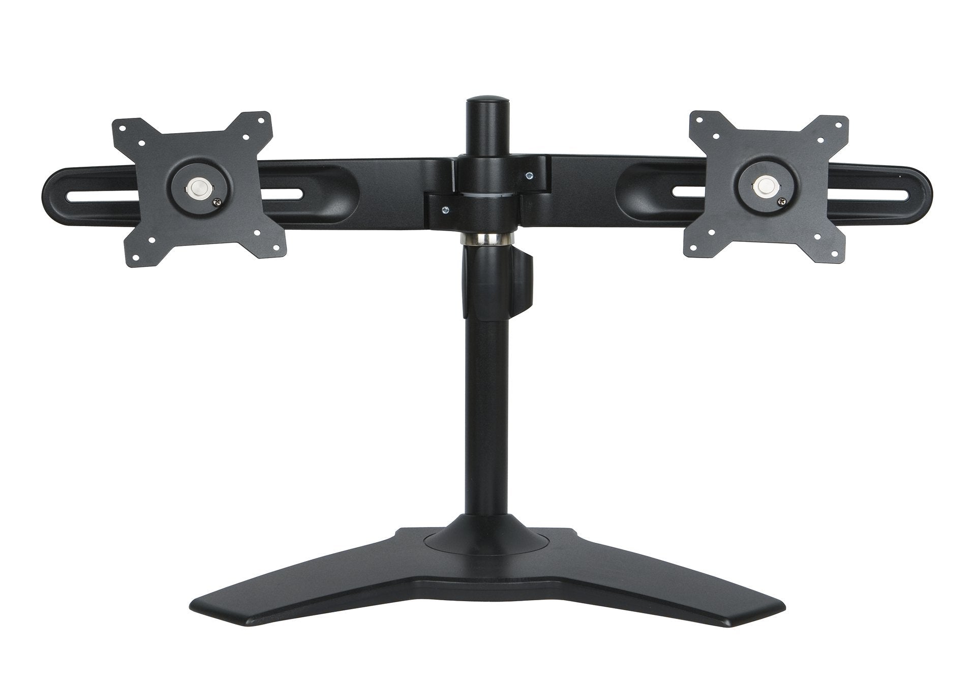 Details: Planar's dual monitor stand maximizes the benefits of two monitors by making it easier to toggle between applications with the seamless display setup. The stand helps to organize displays cables with a cable organizer, and can tilt, swivel, rotate and height adjust. Installation is quick and easy. . Manufacturer: Planar Systems, Inc. Manufacturer Part Number: 997-5253-00. Brand Name: Planar. Product Model: AS2. Product Name: AS2 Black Dual Monitor Stand. Product Type: Display Stand. [Technical Information] Monitor Supported: Up to 24" LCD Monitor. Weight Supported (Approximate): Up to 66.00 lb. [Physical Characteristics] Color: Black. Form Factor: Desk Mountable. [Miscellaneous] Additional Information: Supports two displays between 17-24" with maximum weight of 33 lbs per display Flexibility to tilt up and down +/- 15 Swivel displays side to side +/-20 Rotate 90 for landscape or portrait mode Hole pitch 100 mm x 100 mm VESA and 75 mm x 75 mm VESA. Compatibility: Up to 24'' LCD Monitor.