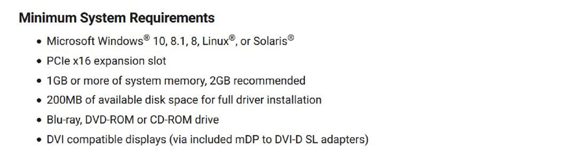 - Bus: PCI-Express 3.0 x16