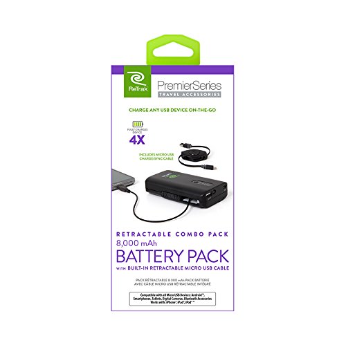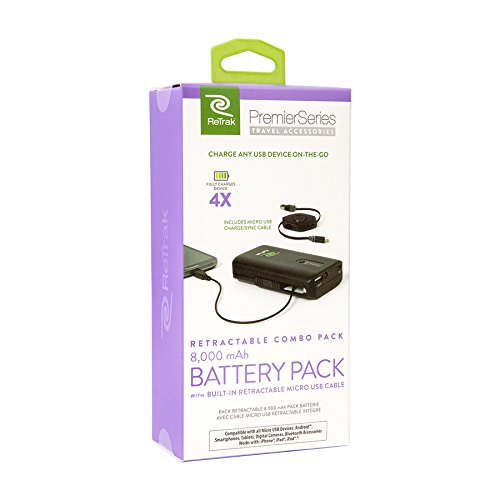 Details: ReTrak Premier 8,000mAh Power Bank - For USB Device, Smartphone - Lithium Ion (Li-Ion) - 8000 mAh - 2.40 A - 5 V DC Output - 5 V DC Input - 2 x - Black